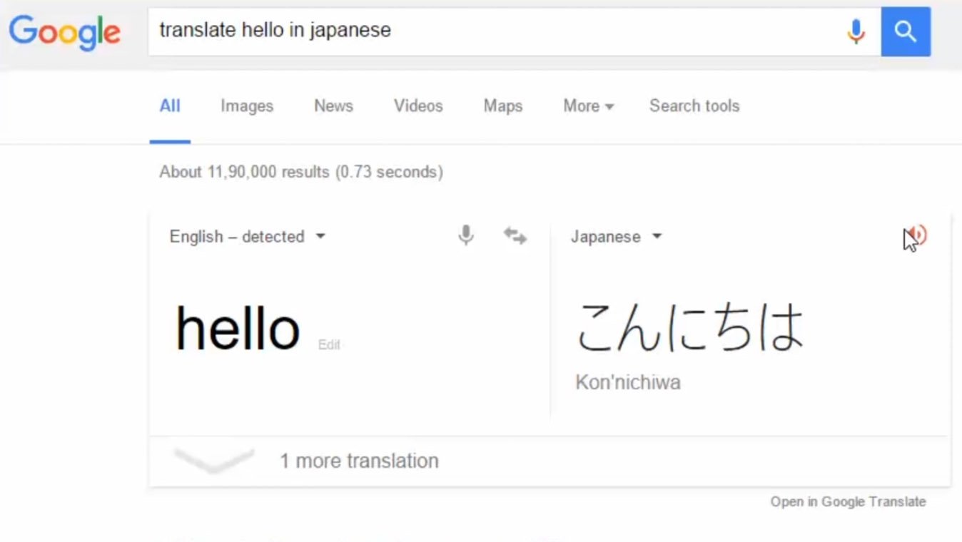 Google has heard of the tutorial. But you can quickly recover any minor word in Google search box. Write for this as traslate hello in Japanese