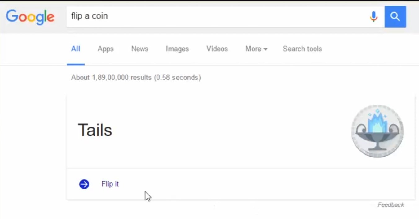 You can toss coins in Google search and you can For this, type in the search box flip a coin