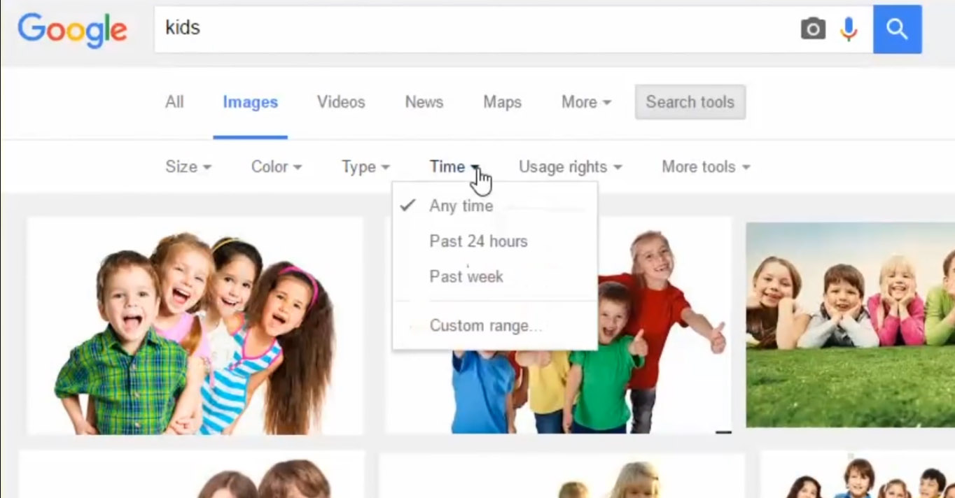 You can find a pop-down tab called search tools like Google Text after you search something in Google Image. Here you will find various options for image related options such as size, color, type, time, privacy and so on.
