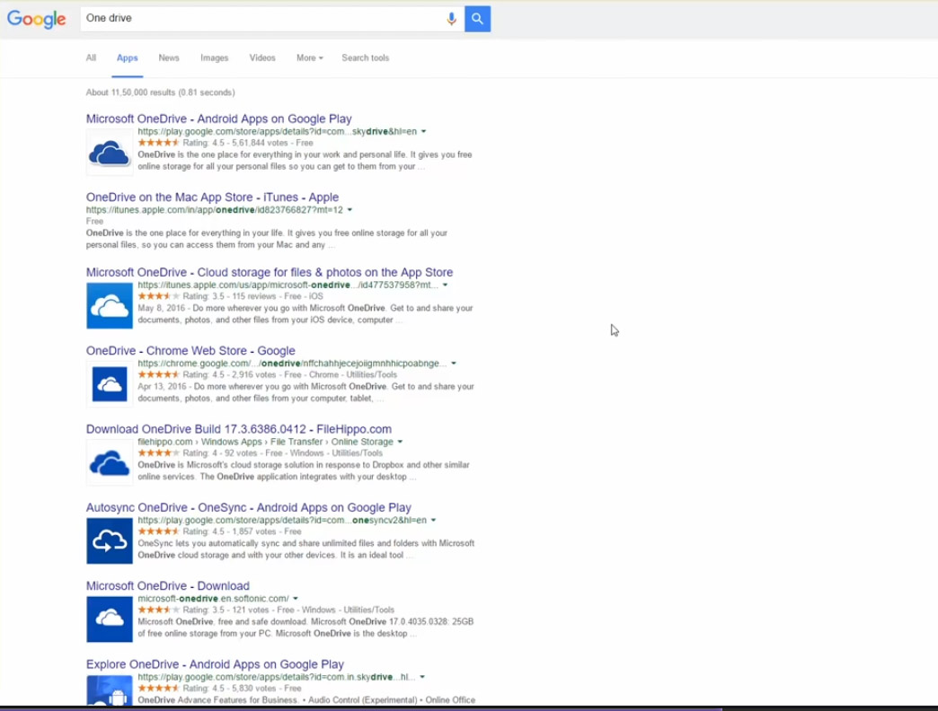If you want to get a search results related to a particular app, by appending the name of the app in the search box and clicking on the apps button, you will get results of different platform applications.