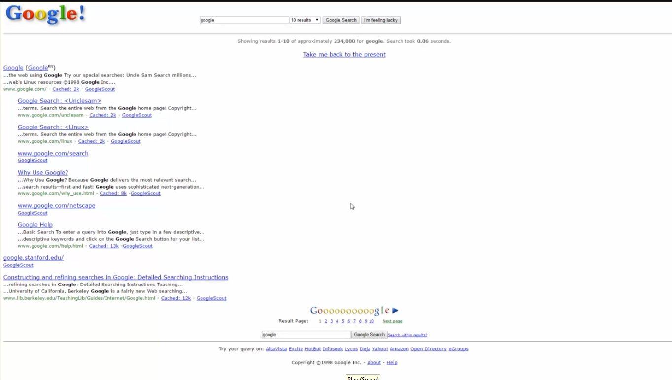 If you want to test your eyes on Google's first launch in 1998 Google write in the search box google in 1998 and take a look at yourself.