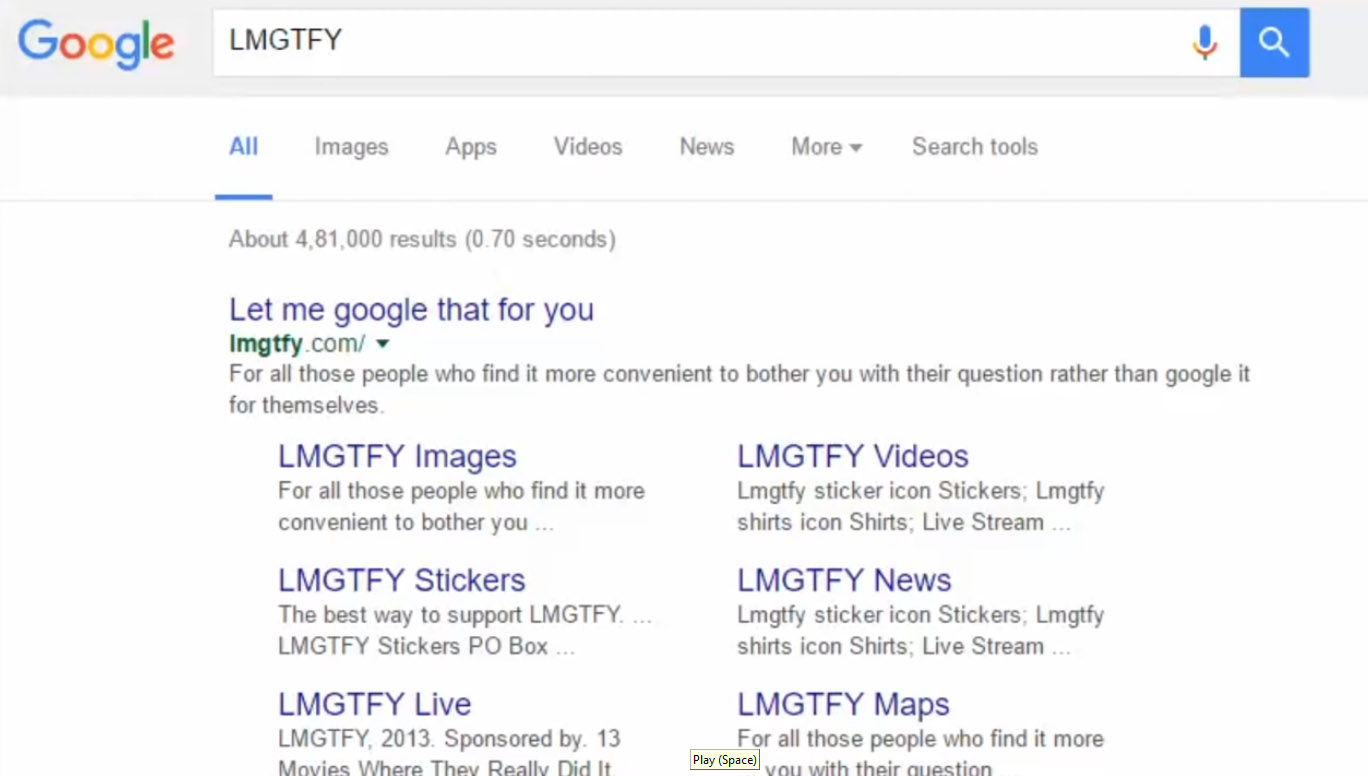 Write to Google LMGTFY and go to this special website of Google and enter your desired search and enter a hyper link below. Now you can see the search result by clicking on the link and sending it to the person who is happy! Without searching!