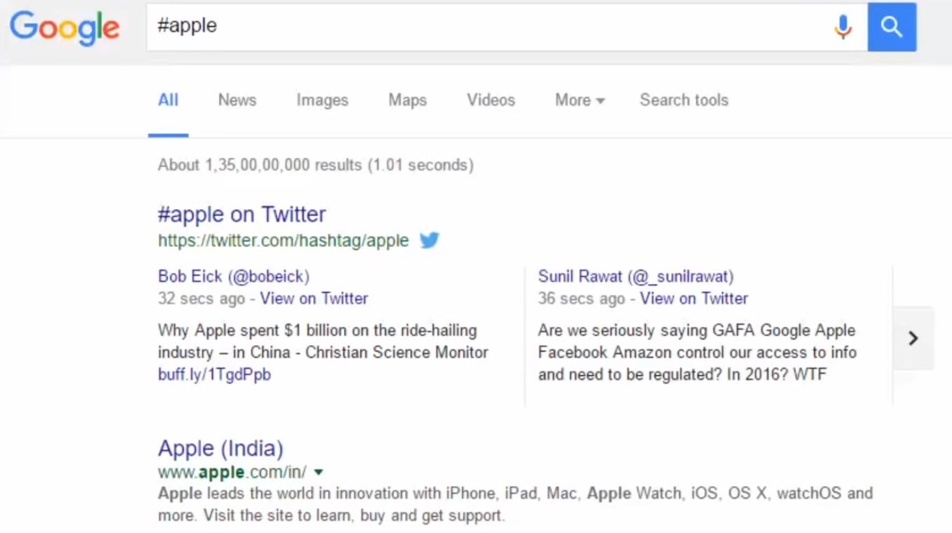 You can find a social tag or profile on Google. For this, you will be able to search by typing @ before the profile name.