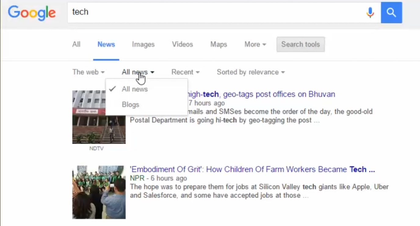 If you want to get a news result, click on the news option from the top tabs after searching the subject.