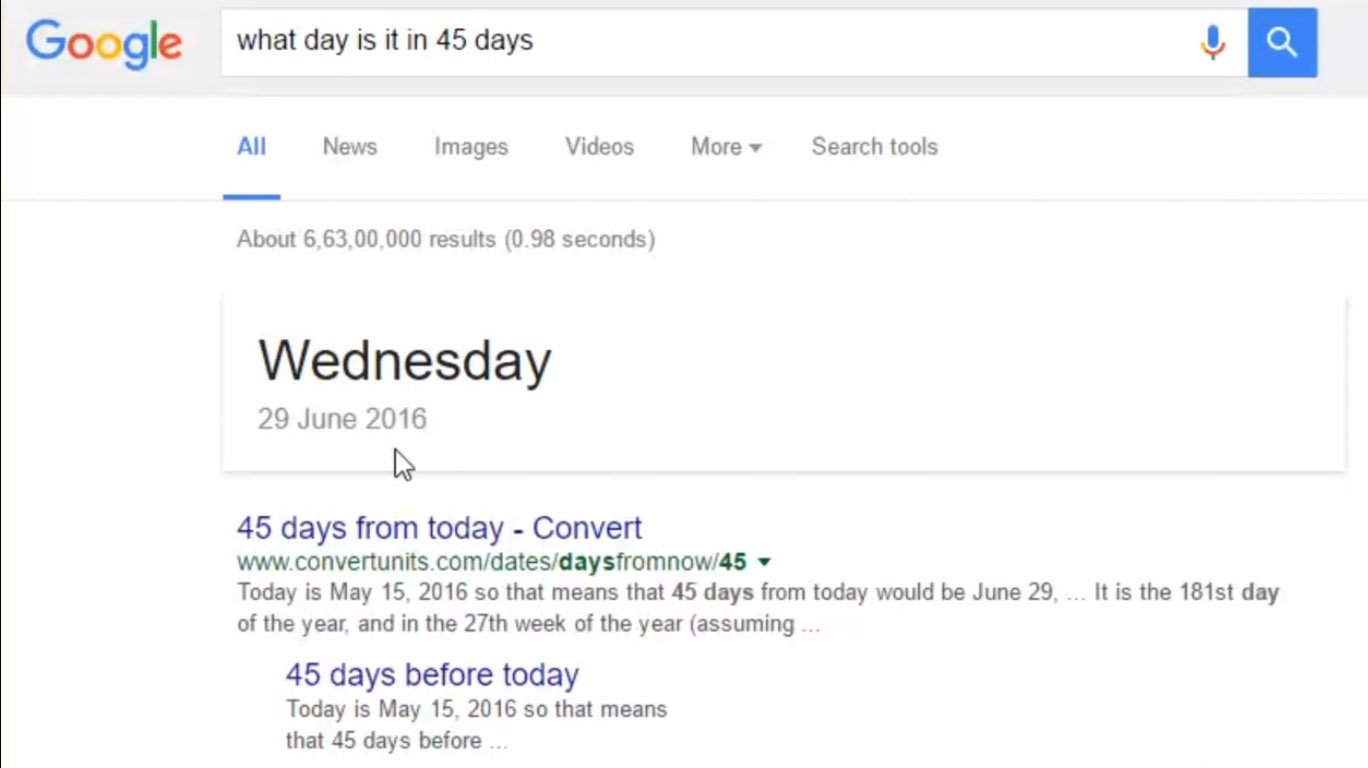 Today, 45 days from today, the date will be? You can also get to know from Google. Just type in the search box. What day is it in 45 days and look at the magic.