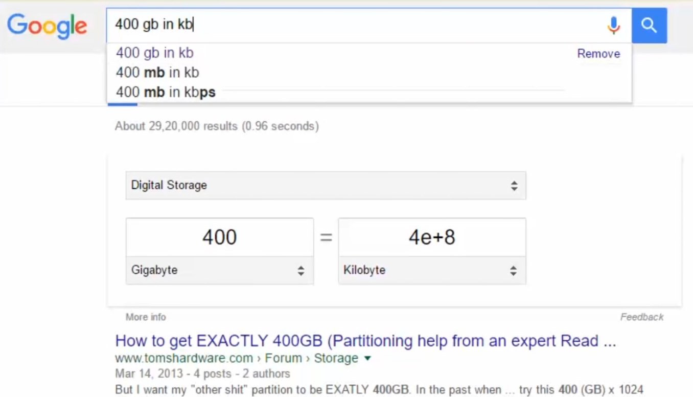 Like other things, you can also convert data into Google. Directly typing the question Google wrote 400GB in KB