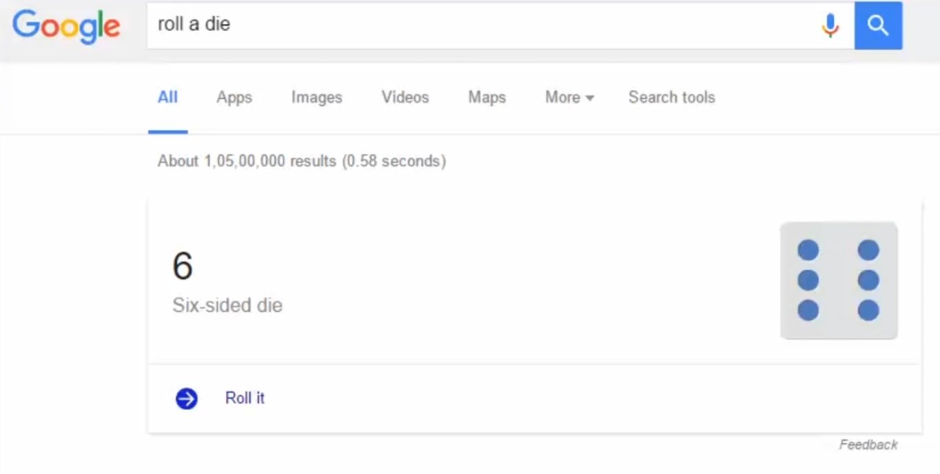 To get another interesting feature of Google write in the search box roll a die and see what happens to yourself.