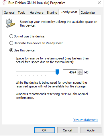Then you will see the above windows which has this slider that can adjust that how much space do you want to use at max you can use 4094. After that hit the apply button.