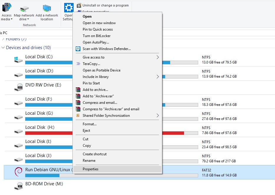 As you can see I have a 16 GB USB with almost 11 GB of free space. Next go to the properties of your USB drive