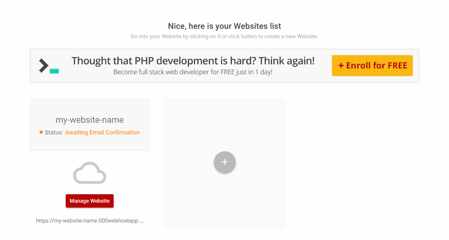 After, verification Click "Manage my-website-name" to manage your hositng and website.
