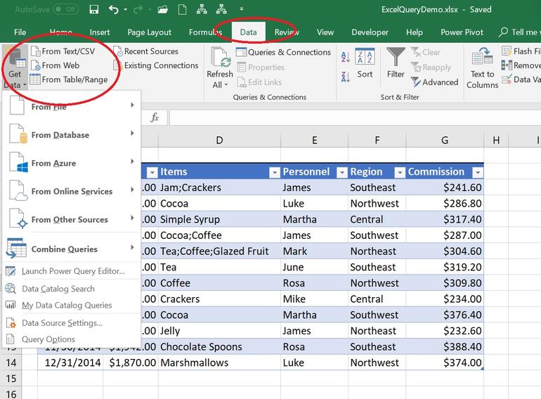 I said before that you can stack information from heaps of sources; I prescribe that you investigate the numerous alternatives (Figure B) all alone. For the time being, we will stack information from a Table question as of now in Excel. On the off chance that your information is an ordinary range, you should change over it to a Table question; on the off chance that you don't, Excel compels you to do as such when you draw in the element.