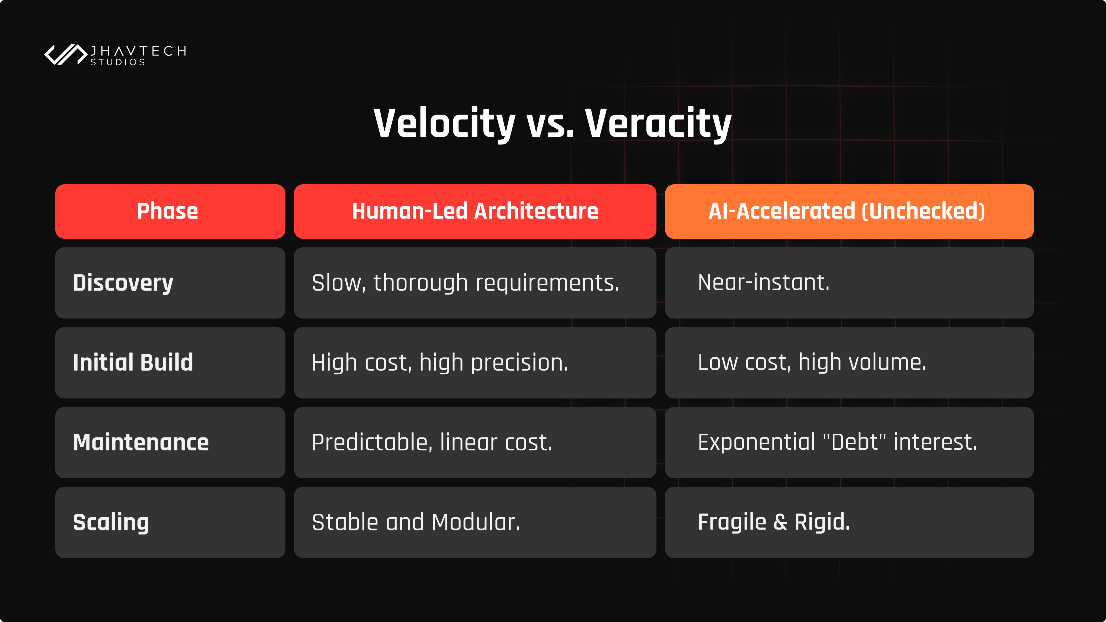 If you save 100 hours in the initial build by letting AI dictate the system architecture, you typically spend 300 hours six months later during the "Big Refactor." For high-growth firms, this is a silent killer; it slows down the delivery "pulse" and creates a "distributed monolith" that offers all the complexity of microservices with none of the benefits.