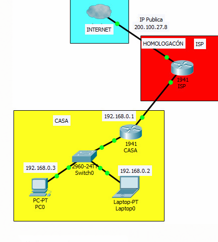 - Después pasan por un switch de capa 2 que es el responsable de mandar los paquetes hacia el router que en este caso va a ser el reponsable de rutear todos los paquetes se envien hacia el ISP (proveedor de servicio)