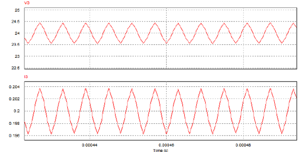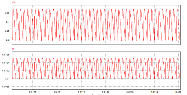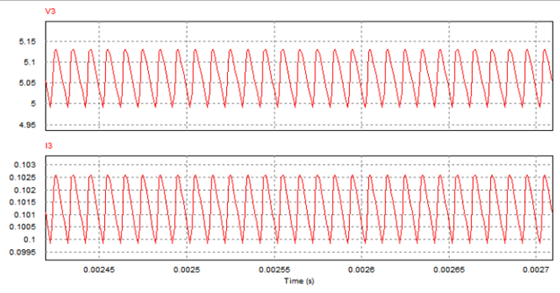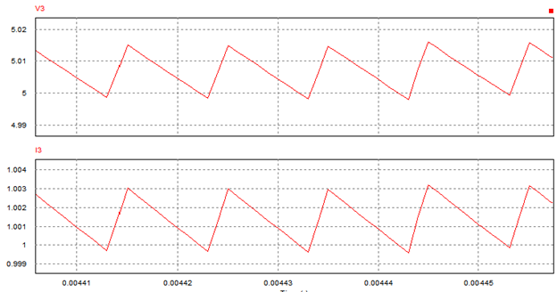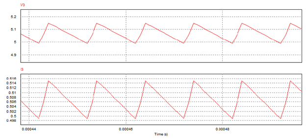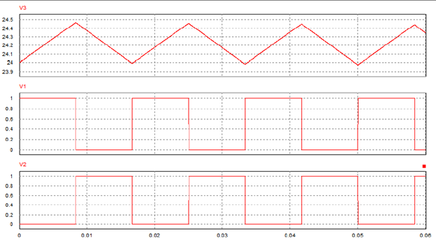 Upper graph (V3): Output voltage.