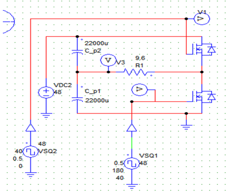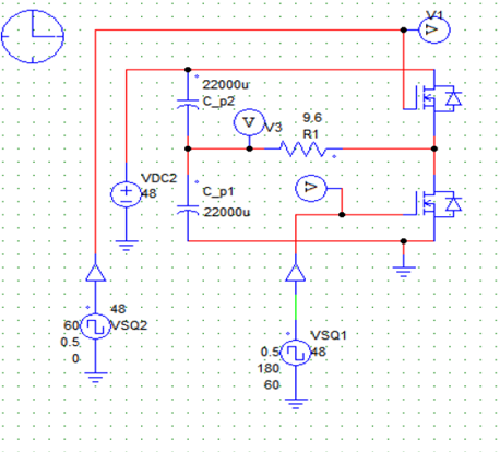 For the DC-AC conversion where the configuration will be single phase, where there are two switches (MOSFET) that will act as a “switch” implementing two states (one on and one off or vice versa). The waveform generated by a single phase inverter is a square of maximum values Vcc / 2 and –Vcc / 2 respectively.