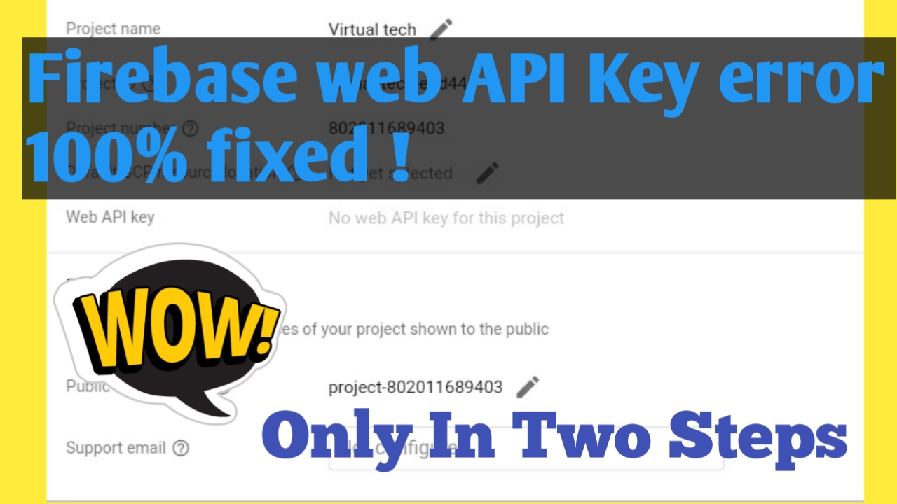 Firebase Web API Key error 100% fixedprasadyelwande (42)in #technology • 5 years ago Firebase Web API Key for this Project error fixed 2021 Watch Now #googlefirebase #firebase #youtube #developer