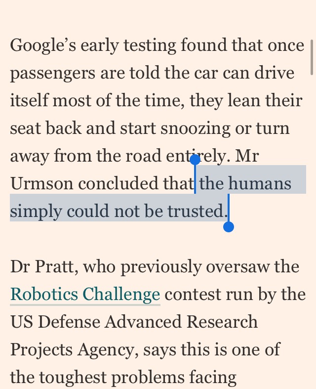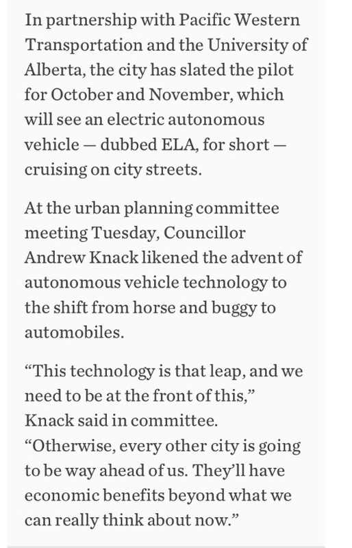 Wow, Mr. Knack likened Autonomous vehicles to that of the switch from horse and buggy to the motor car. Sorry, but I have to disagree here. Sure it's an impressive feat of modern technology.
