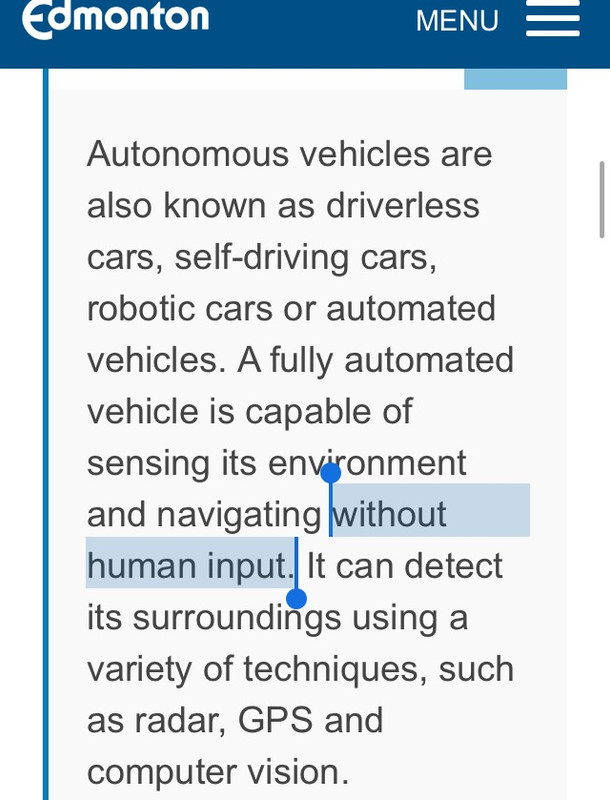 "Also known as driverless cars, self-driving cars, robotic cars or autonomous vehicles, automated vehicles are capable of sensing its environment and navigating without human input."