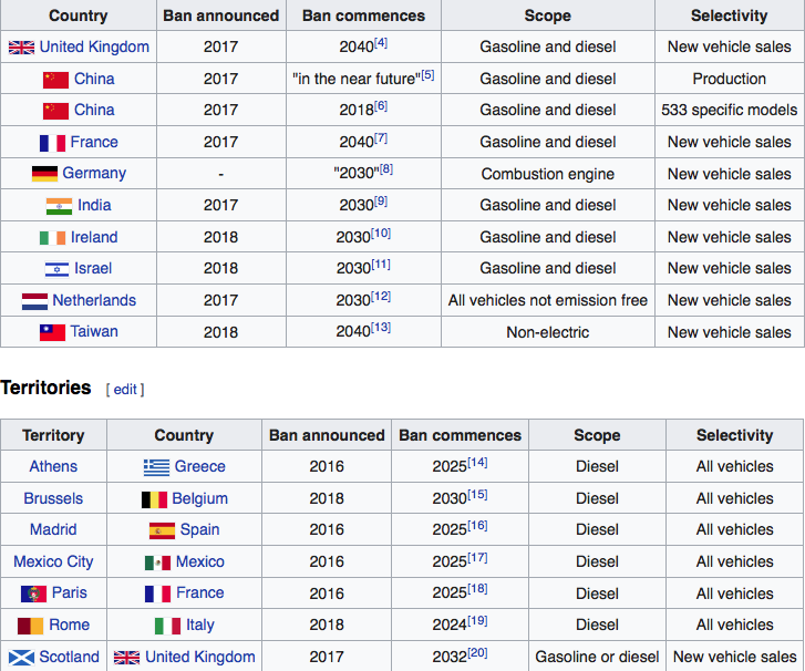 List of countries banning fossil fuel vehicles