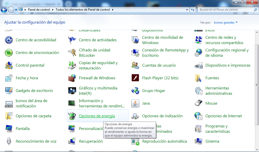 Vamos a pinchar en Opciones de Energía