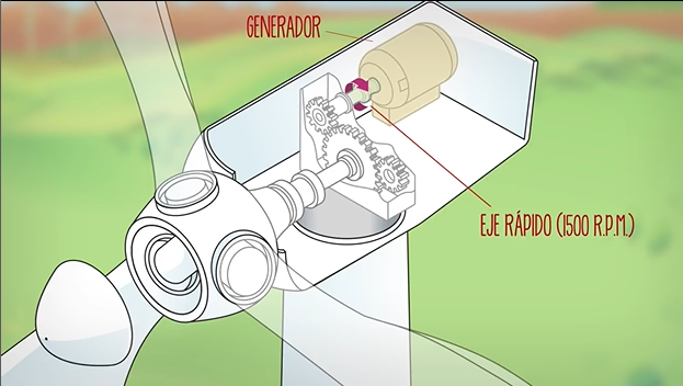 El generador aprovecha la energía cinética del eje rápido para transformarla en electricidad, una forma de energía fácil de transportar y utilizar.