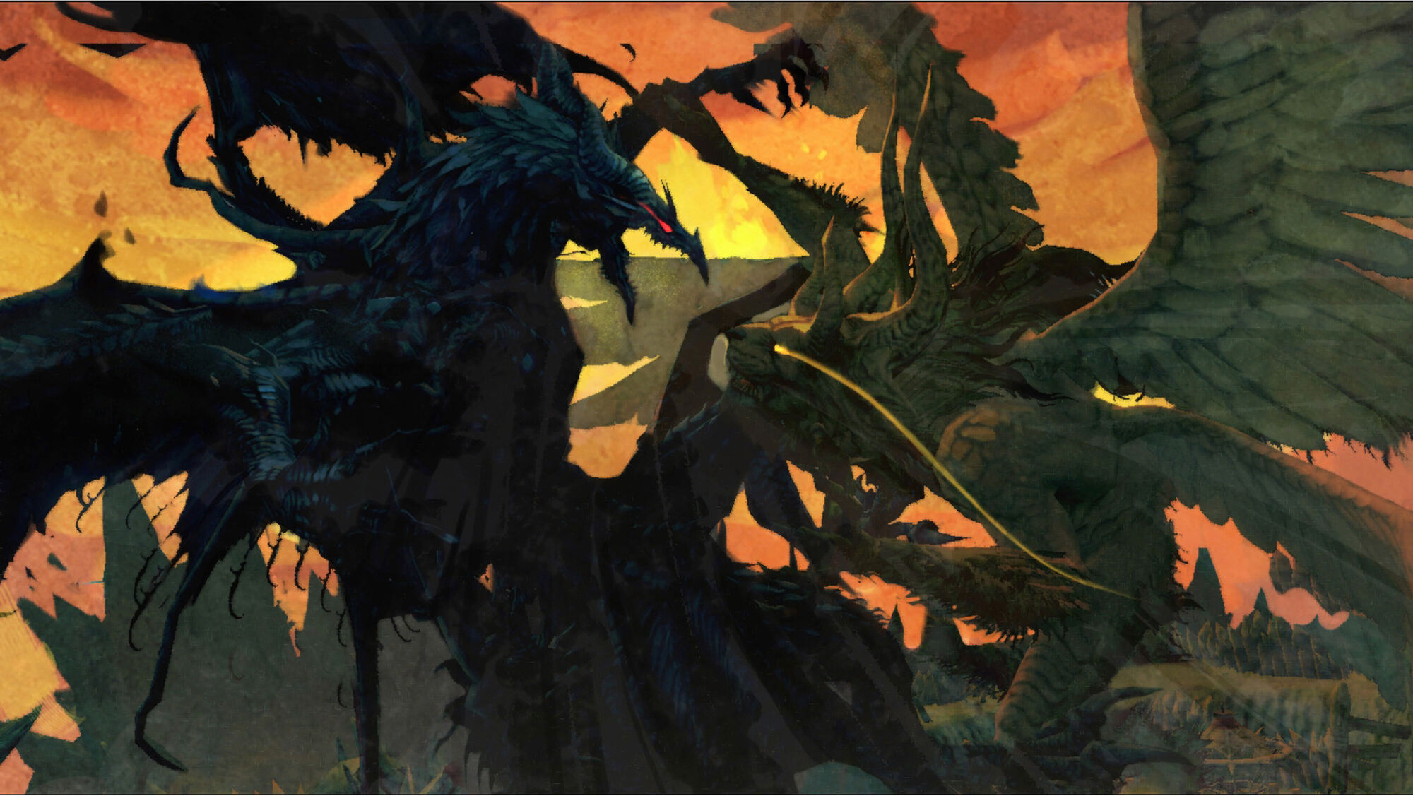 As the cloud starts to settle down, they can still hear thunderous roars, but the trembling seemed to subside. When they see the two creatures fighting, they we're shocked, the golden dragon was bleeding from what seems to be a bite on it's neck, the wound seems fatal, but it seems to have pinned down the black dragon to the ground. While the crowd was still confused, Eleanore seems to mutter something absentmindedly. "Kill it..." she said. "Kill us using your remaining mana... Eleanore".