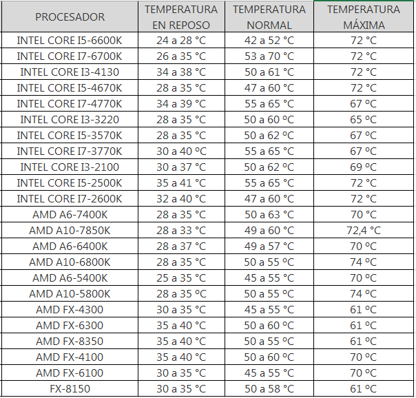 Pero realmente alguien sabe cuál es la temperatura normal de operación de tu procesador? Medirla y no tener un valor de referencia no sirve de mucho así que aquí está el verdadero valor de este post.