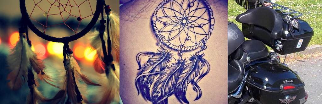 The dream catcher, also known as dream catcher. It is a circular amulet made by hand, usually with a willow bara that has a web-like fabric with a hole in the center, which has the function of filtering bad energies and bad thoughts, it also has pens and beads . It is an ancestral tradition that between biker brothers this amulet is given away, since for what really functions it has to be given by someone who from heart wishes you always have a good trip. So if you have been given a gift, feel yourself fortunate and really appreciated because it has only a positive meaning and good intentions towards you. It is also a tradition that you can not hang another dreamcatcher on your bike until the last of the previous one falls off.