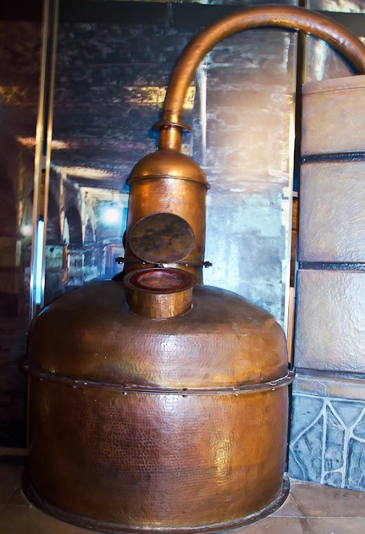 Earlier, the alembics were made of copper and looked like this.