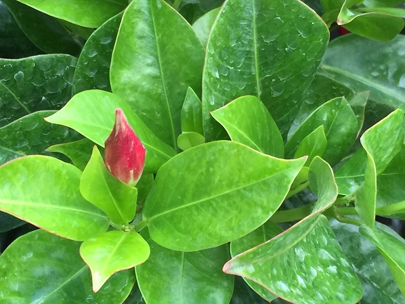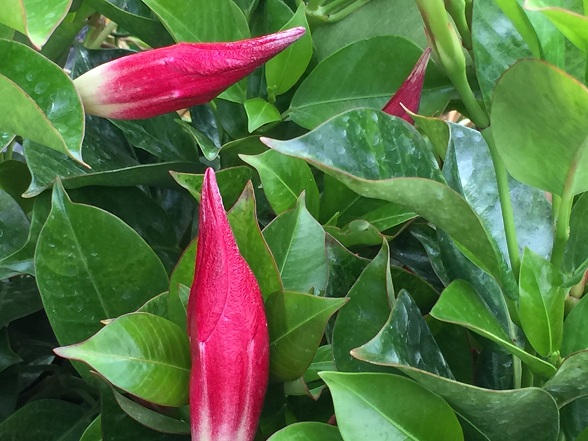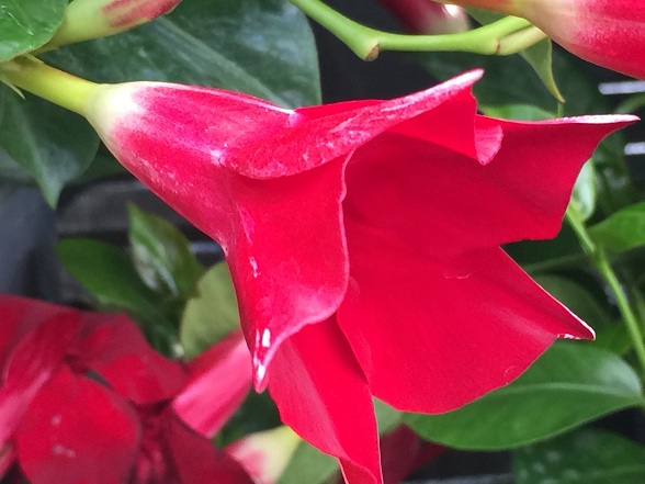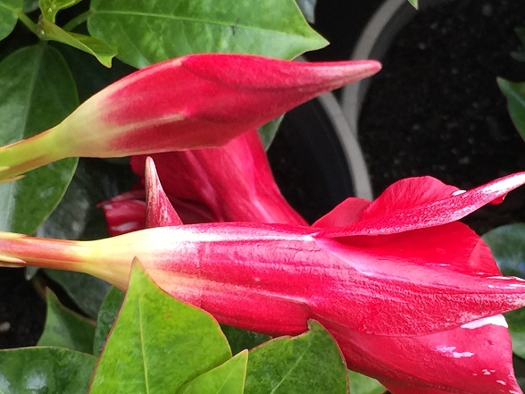 Bunga terompet merah yang cantik. Ketikaku menanamnya.