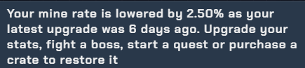 When I was away from the game for 15-20 days I saw that my mining speed was reduced heavily and also the number of attacks I can collect was reduced down to 4.