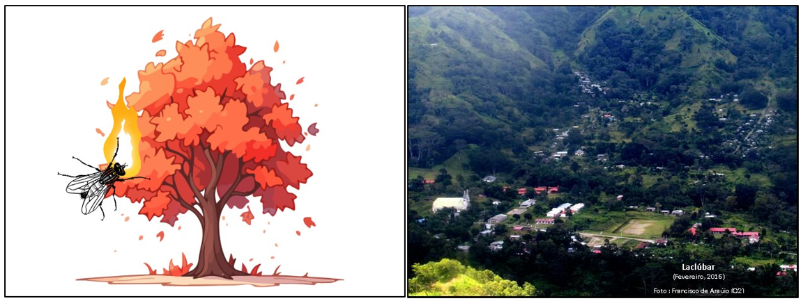 - haktuir katak, bainhira sira rua ko’alia hela iha fatin akampamentu nian, haree lalar (ÚBAR) ida harani-an hela iha aitahan maran ida naran LACOLARAC. Tanba lalar ne’e harani-an metin-nafatin, maka aitahan maran ne’e hahú suar-lakan. Sira kaer tiha aitahan lakan ne’e hamutuk ho du’ut maran uitoan no aisanak sira hodi tau ahi-matan boot ida, iha-ne’ebé sira tunu tiha na’an. Sira rua futu-lia hodi ke’e rai-ku’ak ida no tau subar tiha ahi-latun sira no taka-metin ho fatuk ida, atu nune’e sira halo surpreza ida kona-ba na’an tasak ba sira-nia maun na’in rua, no sira só bele konta sa’ida mak sira hetan bainhira maun-alin rua ne’e promote kaben ho sira.
