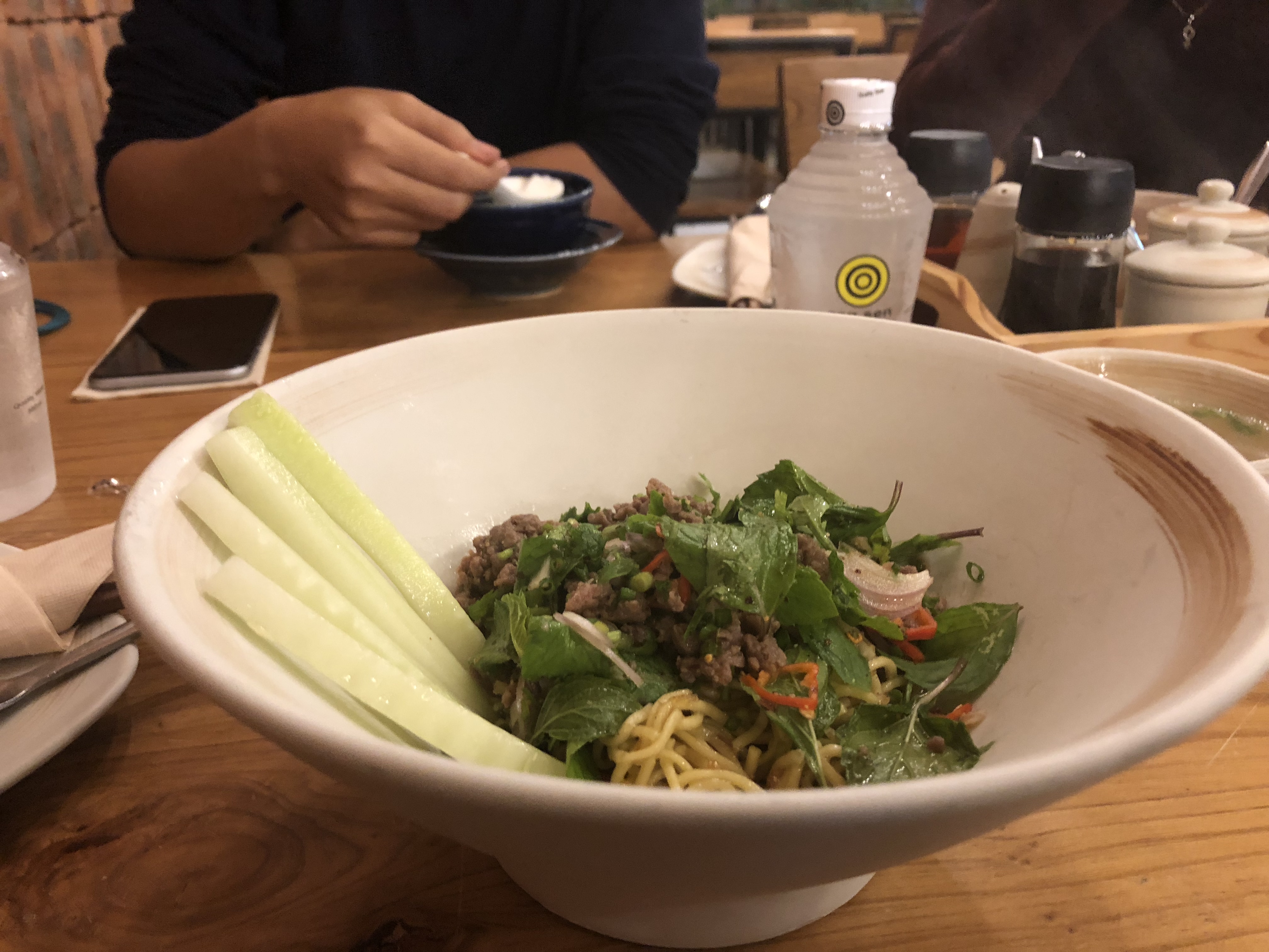 คือวันนั้นคือช่วงเดิกแล้วชักประมาณ3ทุ่มเชิ่งผมก็ได้ท่านอาหารไปแล้วตอน1ทุ่มแต่ก็เกีดหิวขื้นมาอีกเลียไปหาอะไรทานและก็บังเอิญไปเจอร้านๆหนื่งเข้าเชิ่งผมเห็นว่า บรรยากาศ ในร้านดีและสวยงามเลียเข้ามาลองดูจากนั้นพนักงานก็เอาเมนูมาให้เชื่งก็มีเมนูที่หน้าอร่อยมากมากเลียใจด็อยากจะลองท่านให้คบทุกอย่างเลียแต่ตั้งนี้ชิที่ไม่ค่อยจะมี555เลยเลือกมากไม่ได้พอดีเปีดไปเจอบะหมี่หน้าลาบเข้าความรูสืกตอนนั้นแปลกใจมากเพราะพื่งเคยเห็นเป็นครั้งแรกผมก็เลยรู้สืกอยากลองขื่นมาเพราะเห็นมามันแปลกดีและสงสัยมากดีว่าบะหมี่กับลาบนี้เนี้ยนะจะเข้ากันได้เลียสั่งมาลองทานดู หลังจากที่ได้ลองทานแล้วบอกได้เลียว่ารสชาติอร่อยมากๆครับเป็นรสชาติที่พื่งเคยกินเป็นครั้งแรกไม่หน้าเชื่อเลียบะหมี่กับลาบจะเข้ากันได้ขะหนาดนี้อร่อยสุดๆครับ เป็นวันที่ดีอีกวันหนื่งเลียสำหลับผมครับ