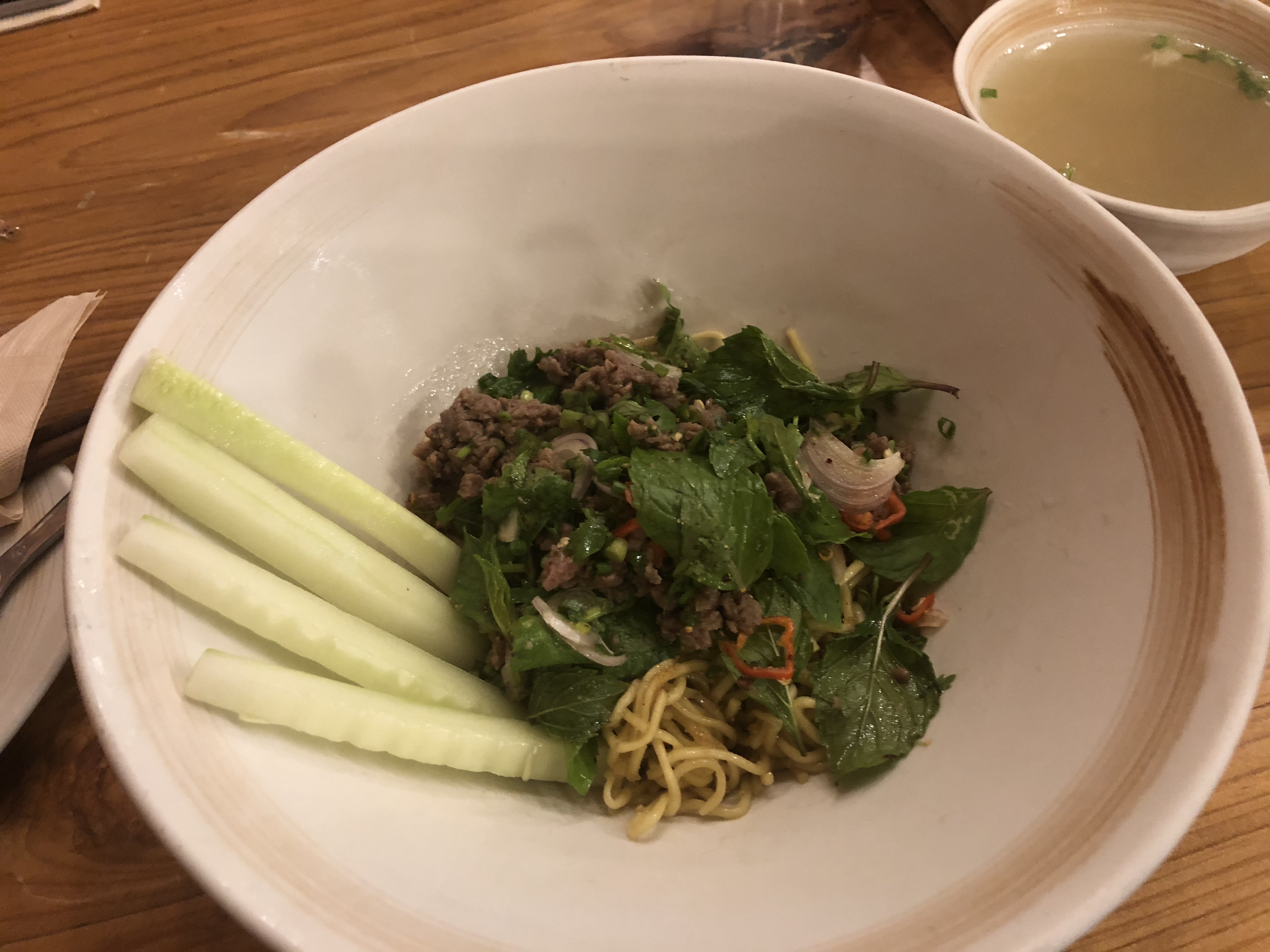 สวัสดีค่ะ เป็นอาหารที่หน้าตาแปลกดี บะหมี่กับลาบ แต่น่าจะอร่อยเหมือนกันนะ ถ้ามีใครไปเวียงจันทน์จะแนะนำให้ลองไปทาน หรือถ้าวิได้ไปก็จะต้องไปลองให้ได้ค่ะ