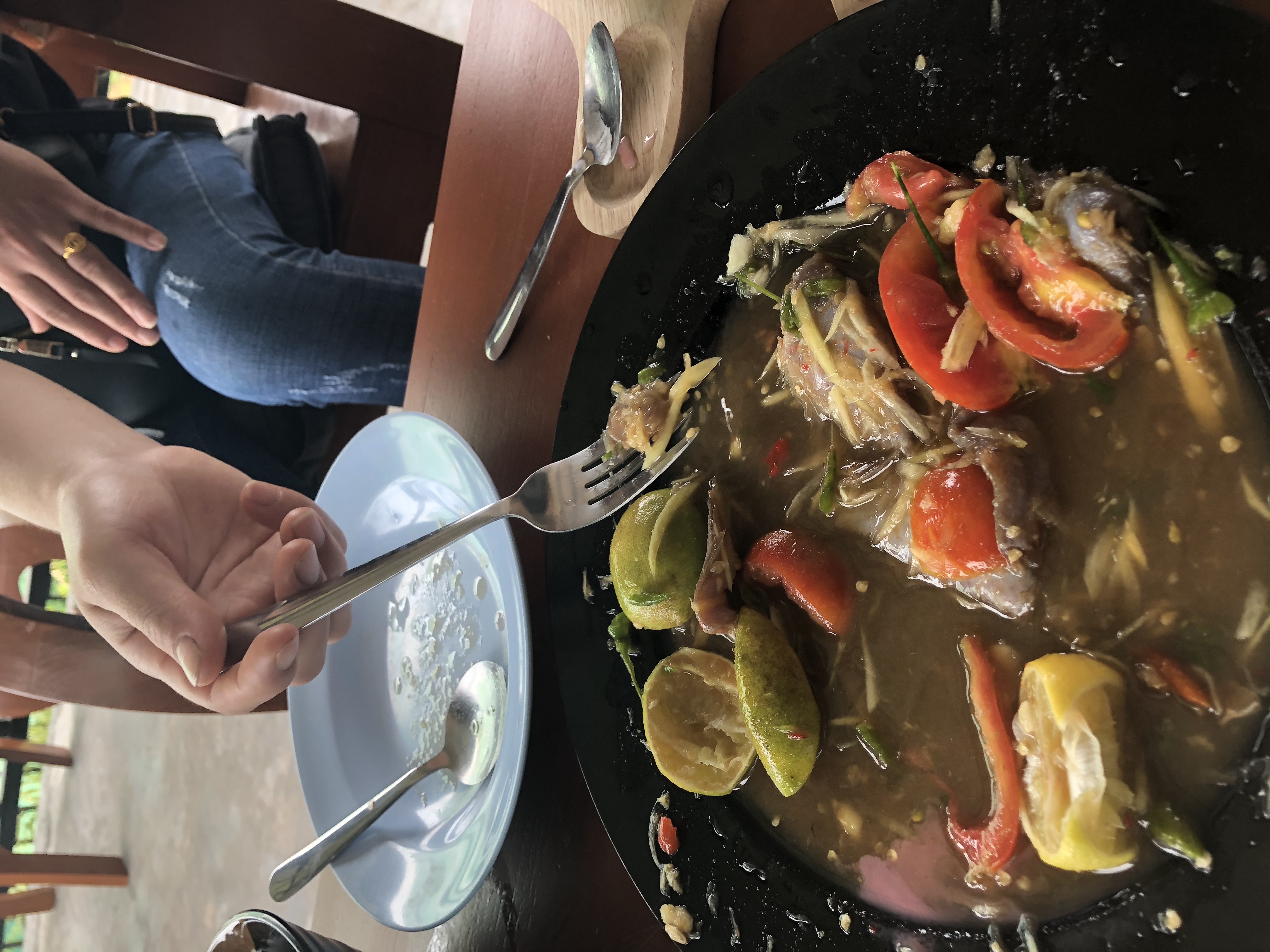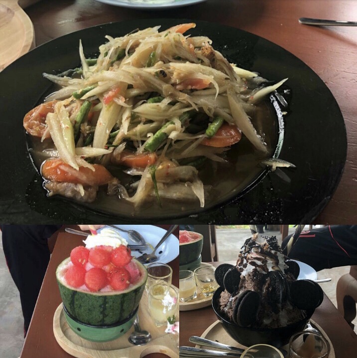 อย่างรูปที่เห็นครับมีหนองน้ำบอกกับต้นไม้ใบหย้าทำให้ลมพัดตหลอดเลยอากาศดีสุดๆ และทีสำคัญอาหารอร่อยมากเชื่งอาหารที่พวกผมสั่งมีส้มตำไทย1 ตำลาว2 ลูกชิ้นลวก2 ถ้วย บิงชูอีกสองเรียกได้ว่ากินจุกันสุดๆ555แต่ด้วยอาหารที่อร่อยทำให้อาหารหมดทุกจานเลยครับอร่อยจนอม่ปมตี้ขอสูตเลียแร่ๆ