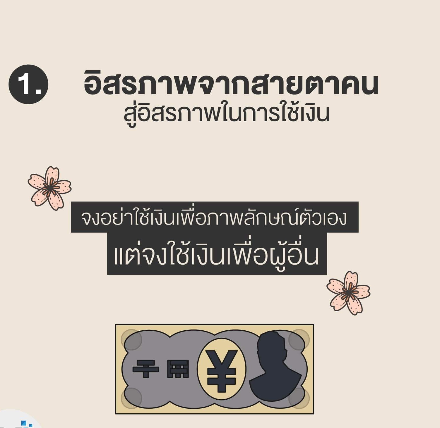 การใช้เงินไปกับสิ่งที่ตนเองรัก หรือเพื่อคนที่ตนเองรักจะทำให้เรามีอิสระและมีความสุขในการใช้เงินมากกว่าการใช้เงินเพื่อรักษาหน้าตาและภาพลักษณ์ของตนเองเพียงอย่างเดียว