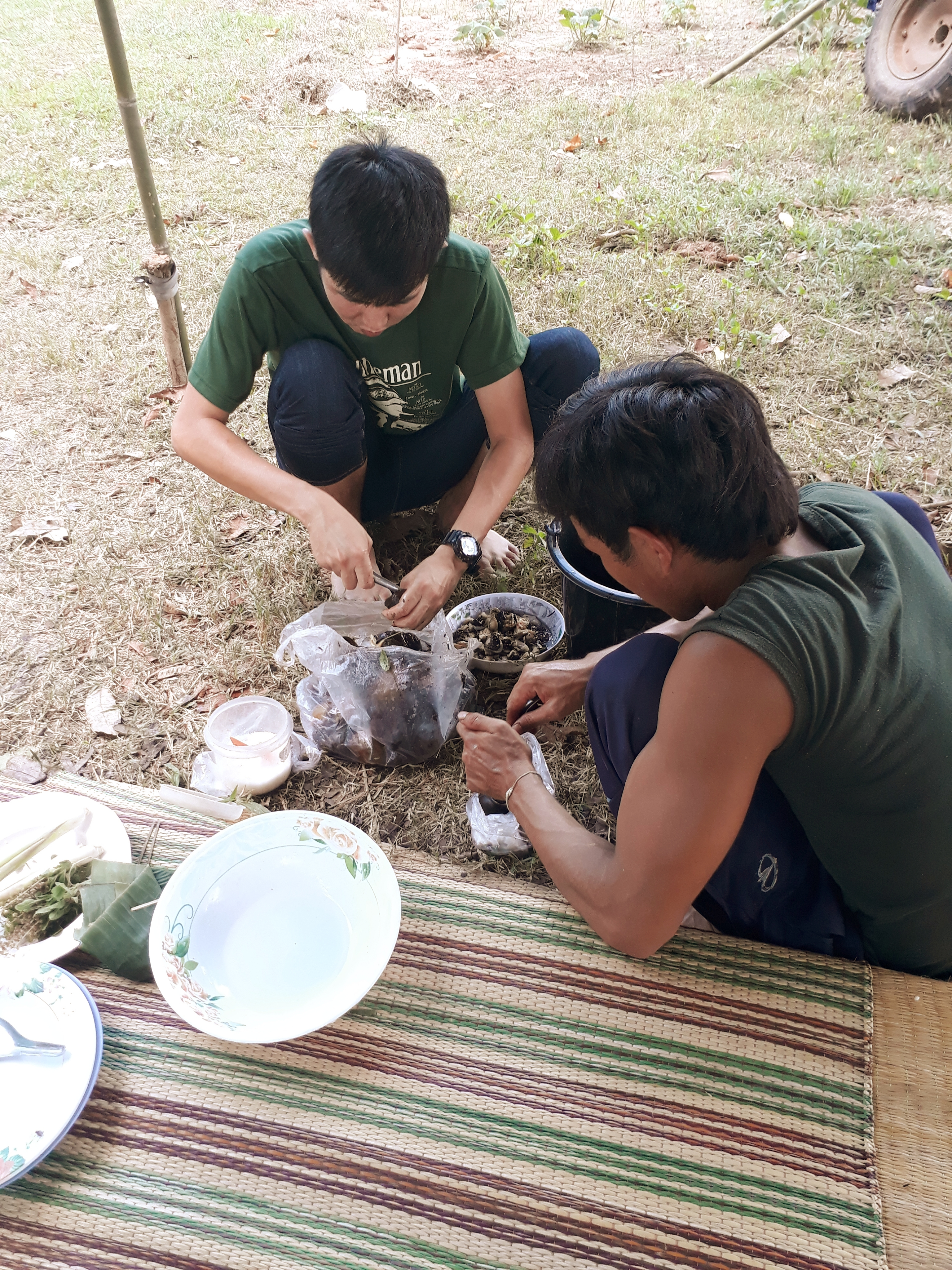 กำลังแกะหอยเชอรีเอาไว้กินกับส้มตำ มันเข้ากันดีค่ะ
