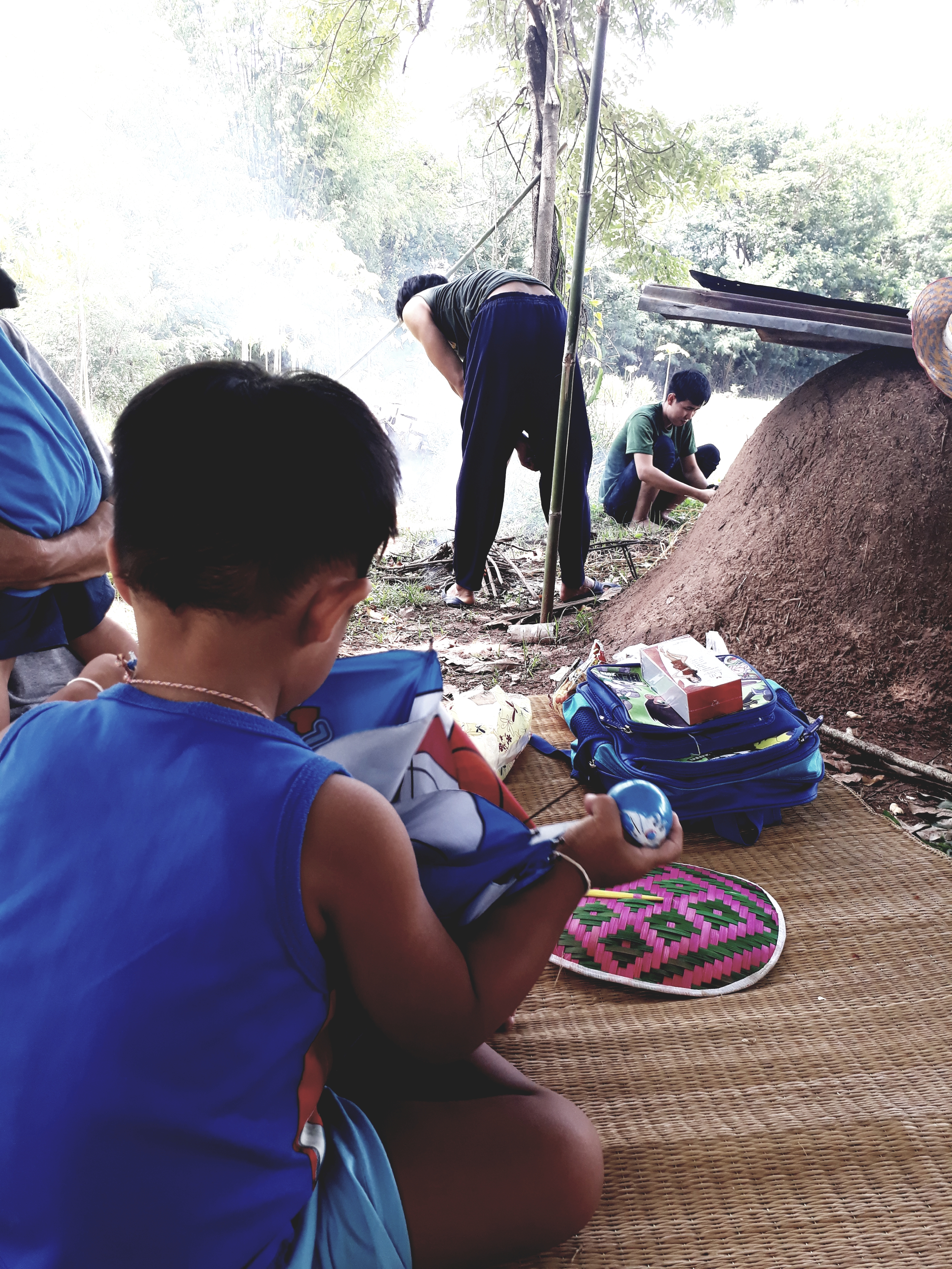 กำลังเตรียมไฟสำหรับหมกปลาลูกคอกให้เด็กๆกินค่ะ