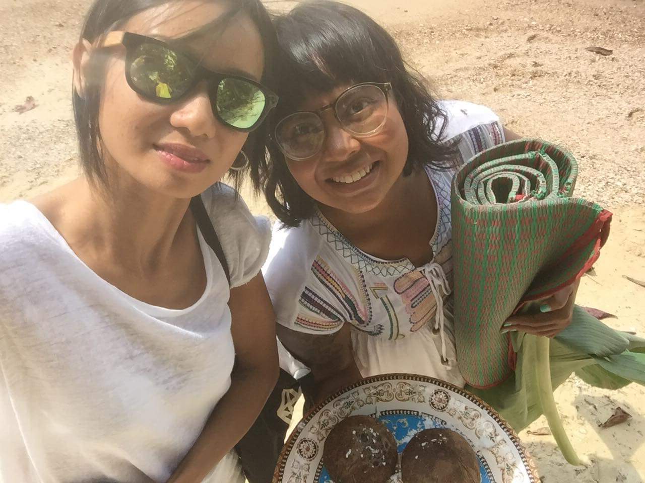 เค้าก็อยากได้แบบชายหาดฉันกับเพื่อนๆก็ต้องหอบหิ้วอุปกรณ์ทุกอย่างไปชายหาดค่ะ เสื่อ มะพร้าว มีด กระต่าย ก็ทุลักทุเลหน่อยๆเพราะไม่ใช่นักแสดงมีอาชีพ ก็ต้องถ่ายใหม่ทำใหม่ซ้ำๆหลายอยู่หลายรอบ สุดท้ายก็เสร็จ ใช้เวลาไปชั่วโมงกว่าๆ