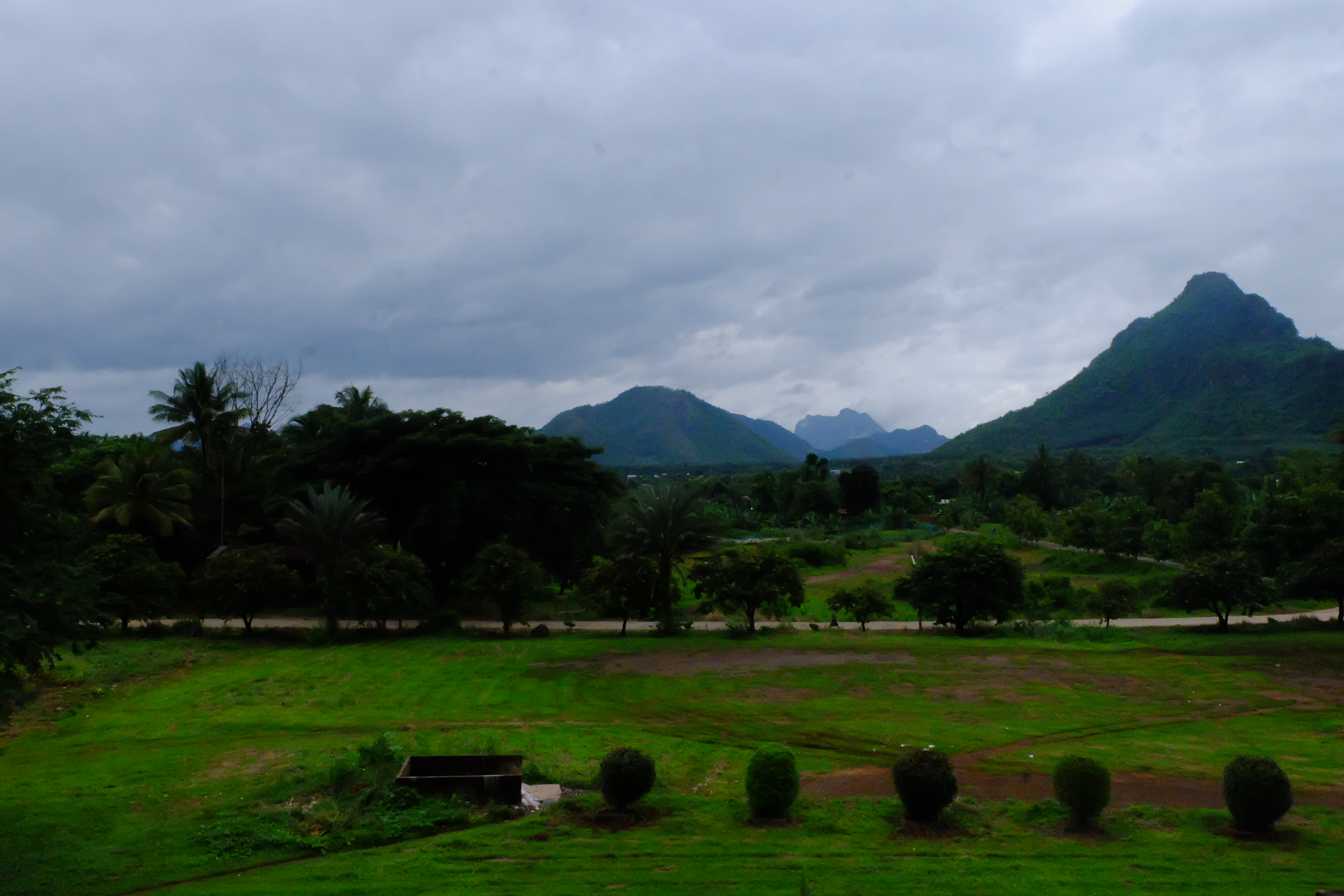 เมื่อเดินลงจากวัด ไกด์แนะนำให้เดินอ้อมมาทางด้านหลัง เพื่อชมวิว เราก็คิดว่าน่าเป็นทิวเขาที่เราชักภาพมาจากหน้าต่างชั้น 2 แน่ๆ แต่พอมาดูใกล้ๆ โหวววว อะเมซิ่ง!!!