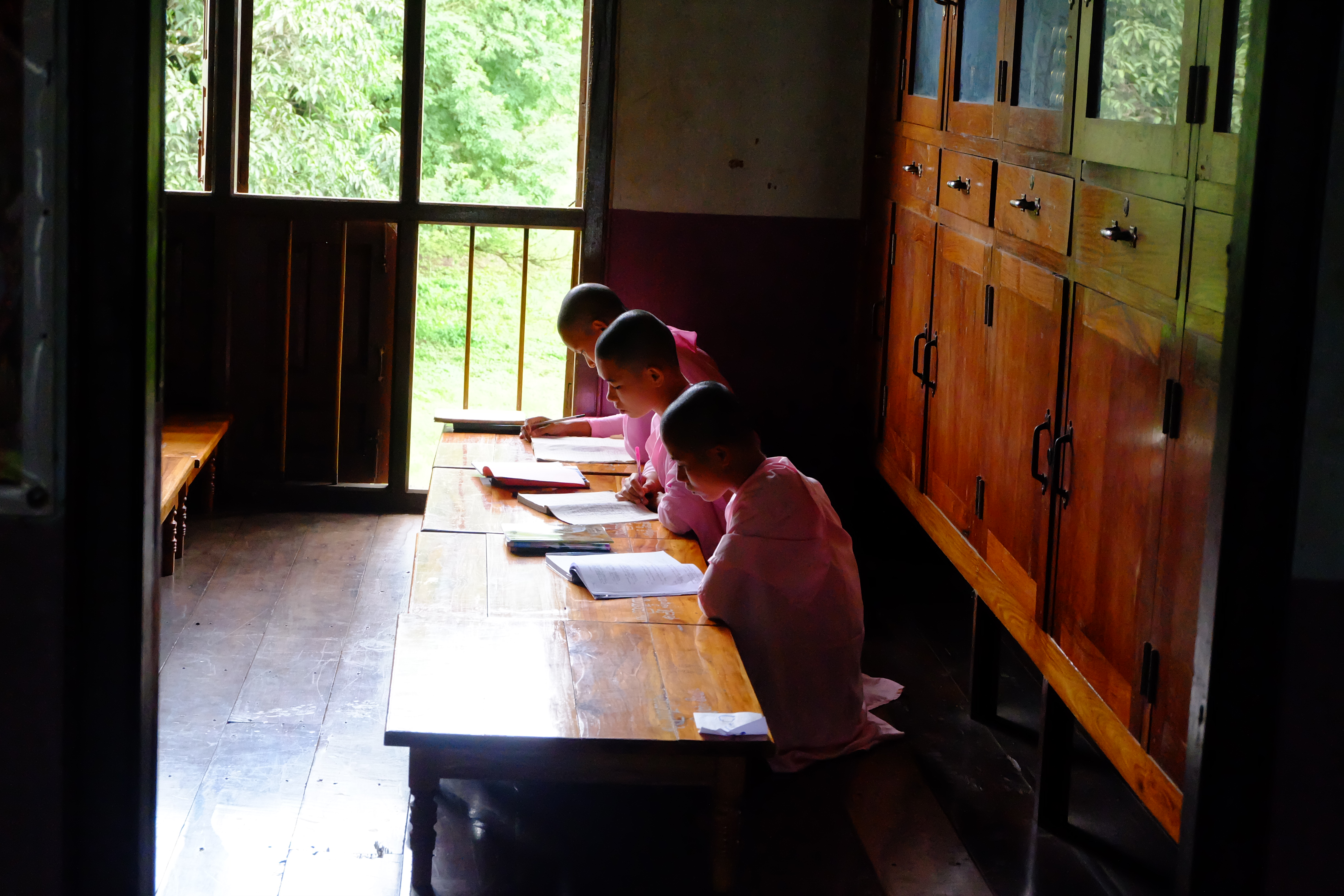 กราบพระเสร็จ ขณะเดินชมบริเวณรอบๆ ก็แอบไปเห็นแม่ชีน้อยกำลังเรียนหนังสือกันอยู่ แม่ชีที่นี่ใส่ชุดสีชมพูอ่อน ดูสวยแปลกตาดีค่ะ
