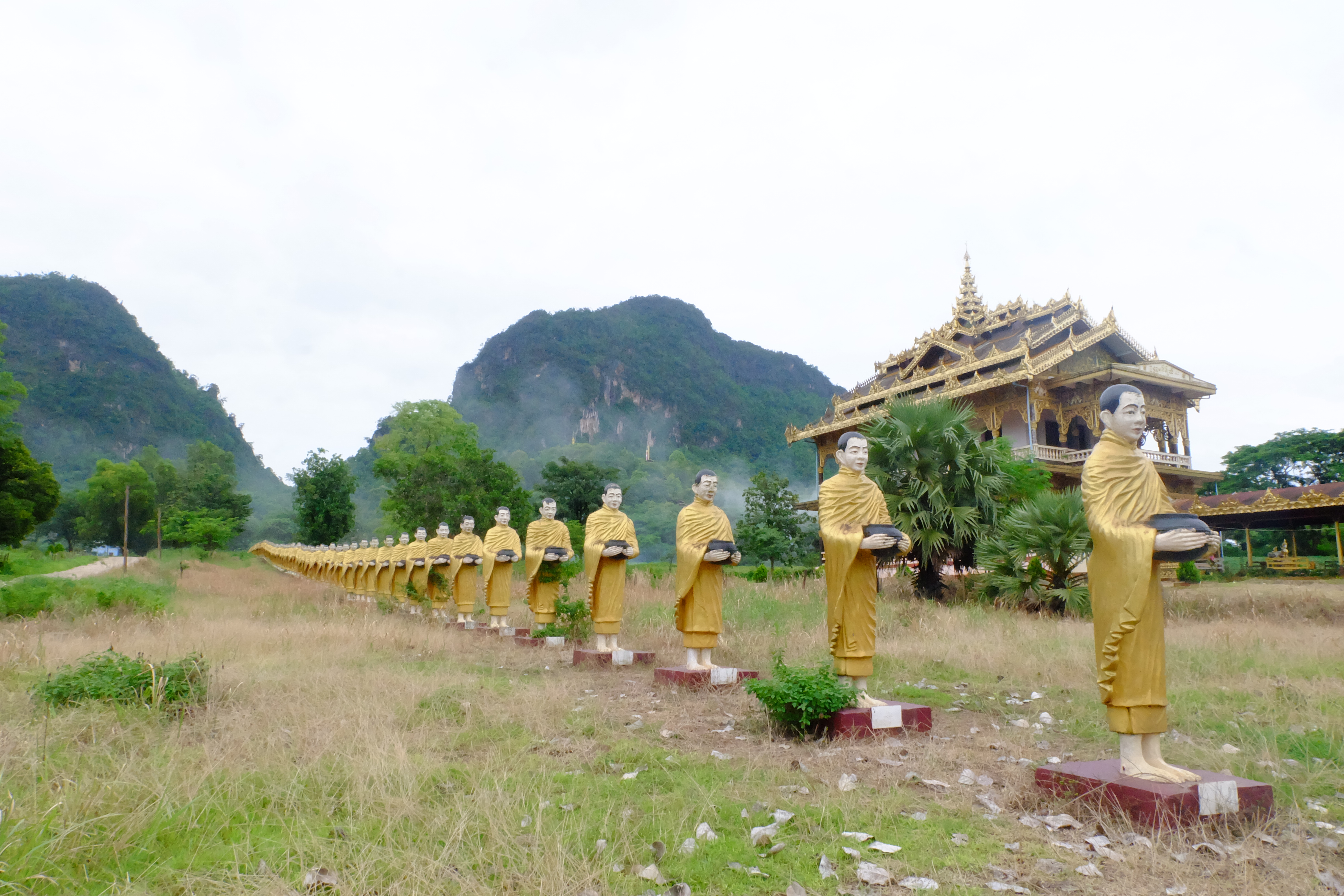 มีรูปปั้นพระอรหันต์เดินบิณฑบาตรเรียงเดี่ยวมาจากภูเขามากถึง 128 รูป ไกด์เล่าว่า เดิมหลวงพ่ออุตตมะท่านตั้งใจจะสร้าง 500 รูป แต่สร้างไม่เสร็จท่านก็มรณภาพเสียก่อนค่ะ