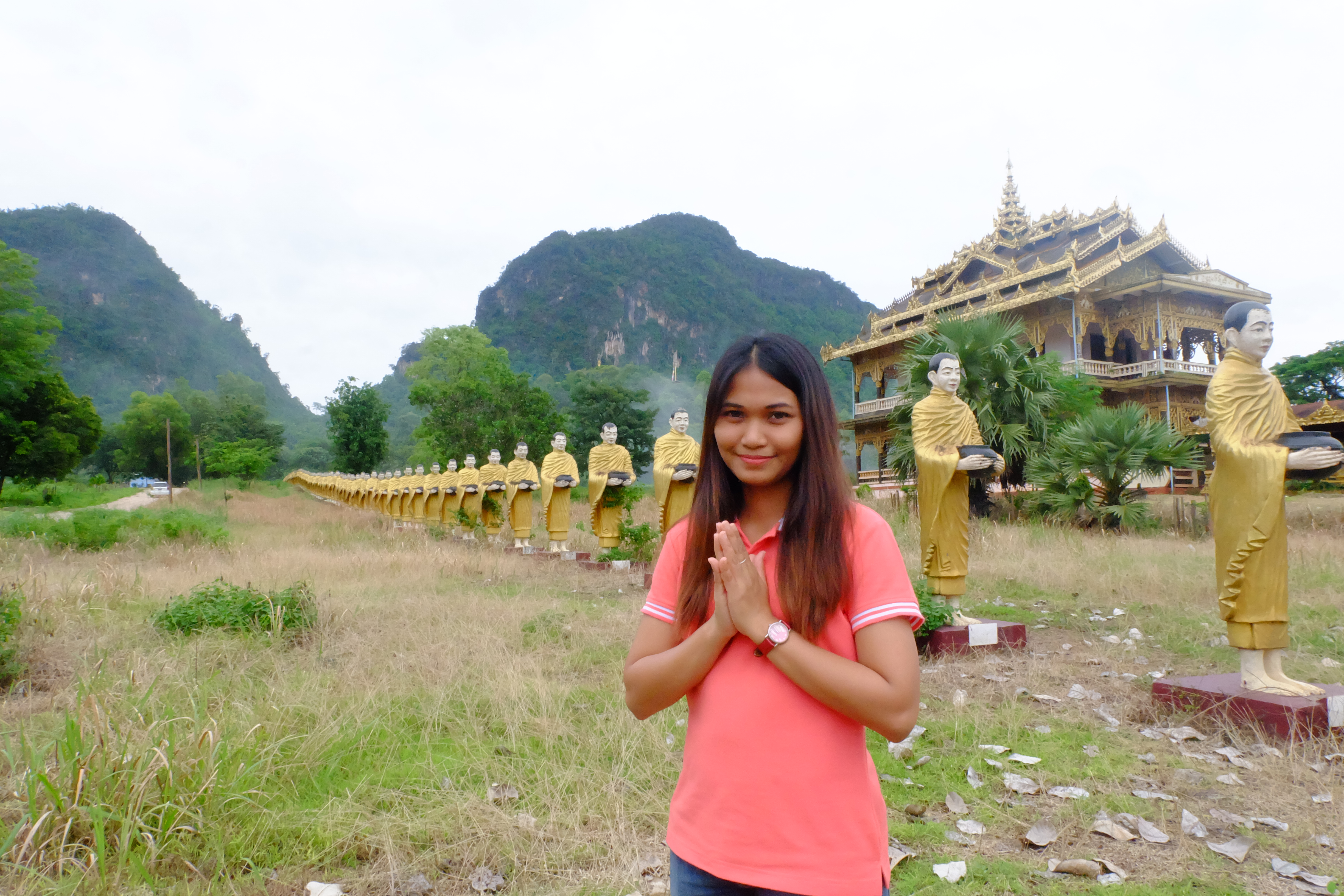 เมื่อข้ามแดนตรงด่านเจดีย์สามองค์มา ก็จะเป็นเมืองพญาตองซู ประเทศพม่า นั่งรถมานิดเดียว ประมาณ 5 กม. ก็จะถึง "วัดเสาร้อยต้น" ค่ะ