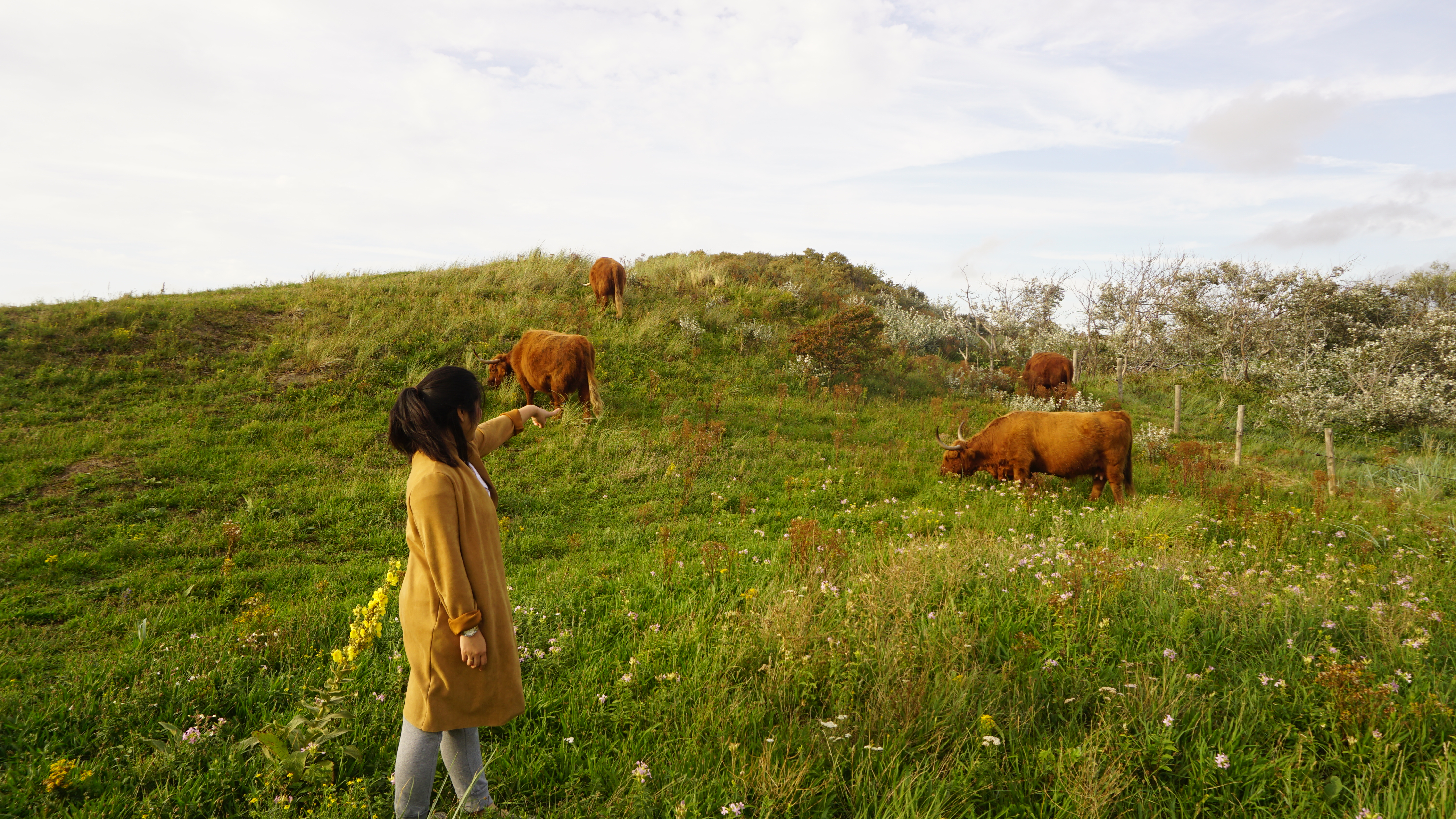 สวัสดีเพื่อนพี่น้องในSteemit ทุกคนค่ะ วันนี้เอาภาพบรรยากาศที่เนเธอร์แลนด์มาฝาก เดินเล่นที่เนินทรายใกล้ชายหาดของScheveningen ,The Hague อากาศช่วงนี้เริ่มจะเย็นแล้ว ฤดูร้อนใกล้จะบอกลาอย่างจริงจัง อากาศอยู่ที่ประมาณ 14-19 องศา ออกจากบ้านต้องเตรียมเสื้อกันหนาวและร่มเผื่อไว้ด้วยค่ะ เดินเล่นในวันนี้ก็เจอน้องวัวไฮแลนด์ด้วย น่ารักมากเลย แต่ก็ไม่ค่อยกล้าเข้าไปใกล้มากเท่าไหร่ ถึงแม้จะรู้ว่าพวกเขาเป็นมิตรกับคนที่นี่ แต่ด้วยความที่น้องวัวตัวใหญ่ เขาใหญ่ด้วย เลยขอชมความน่ารักอยู่ห่าง ๆค่ะ