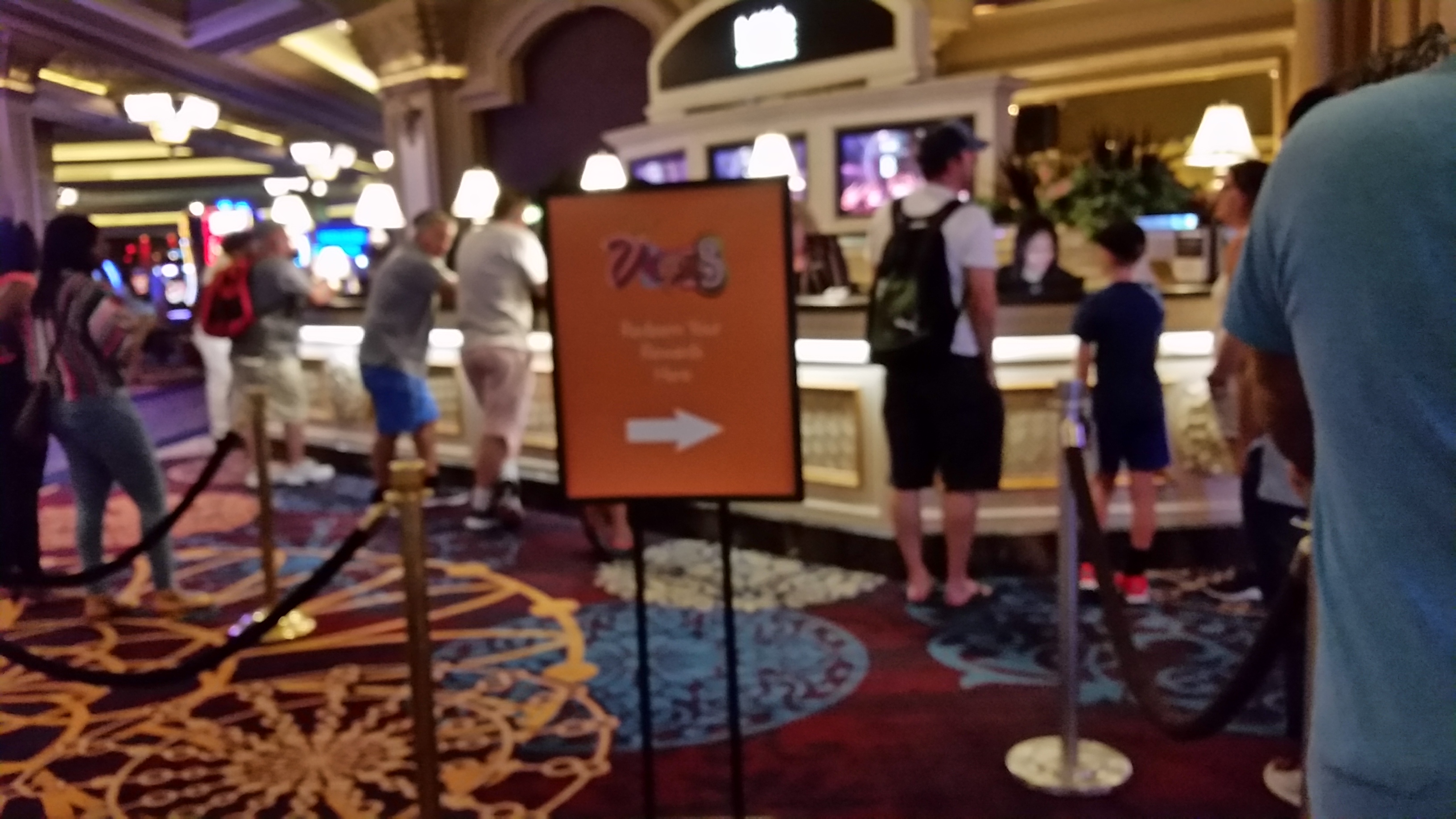 ส่วนวันที่ 3 โปรแกรมก็คือการกินบุฟเฟ่ต์เช่นกันค่ะ แต่วันนี้เป็นบุฟเฟ่ต์อาหารเช้าหรืออาหารกลางวัน (แต่ของวันก่อนเป็นอาหารเย็น) ร้านอาหารที่ไปกินก็จะอยู่ที่โรงแรมหนึ่งแถวสตริปอีกเช่นกัน วันนี้พวกเราไม่ได้ทานอะไรไปก่อน เพราะกะจะทานเป็นเช้ากับเที่ยงรวบยอดเป็นมื้อเดียวกันเลย ก่อนที่จะไปกินพวกเราต้องไปแลกแต้มจากการเล่นเกมส์ MyVegas อีกเช่นกัน โดยใช้ ซื้อ 2 จ่ายแค่ 1 คน .....การแลกก็ต้องใช้บัตรของ M life ลงทะเบียนที่เค้าท์เตอร์ เพื่อรีดีมคูปองจากการเล่นเกมส์ ไปใส่บัตร M life จากนั้น ก็นำบัตรไปซื้อบุฟเฟต์ที่ร้านอาหาร 2 คน จ่ายแค่ 1 คน คุ้มสุดๆ