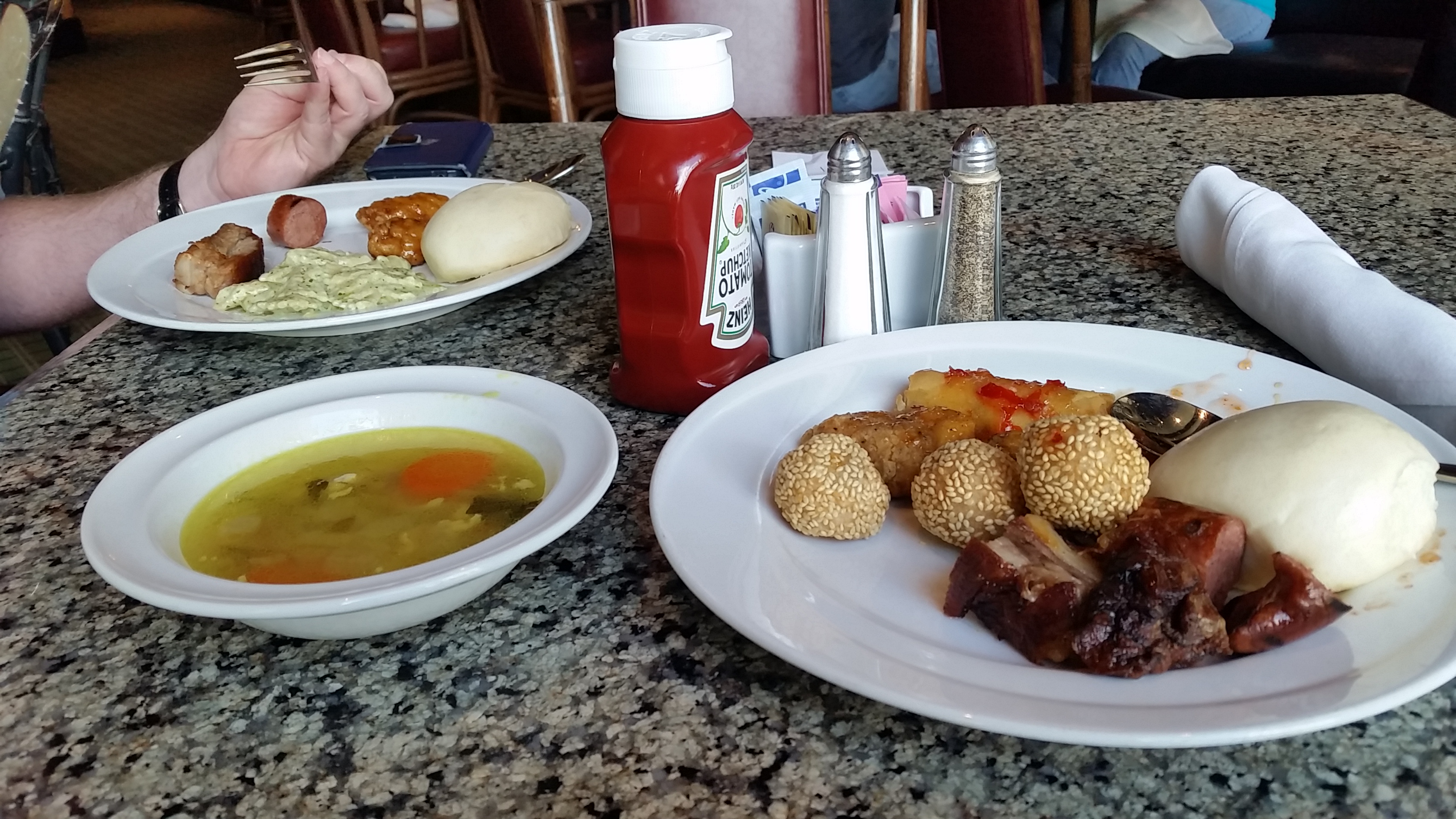 ที่บุฟเฟต์ที่นี่ เค้าบริการเครื่องดื่มให้ด้วย ดังนั้นต้องสั่งเครื่องดื่มจากพนักงานบริการ อาหารที่นี่ที่แนตชอบจะเป็นอาหารจีน ของเค้าค่อนข้างอร่อยและมีหลายอย่างให้เลือกทาน หลังจากกินเสร็จก็ต้องให้ทิปกันตามระเบียบ
