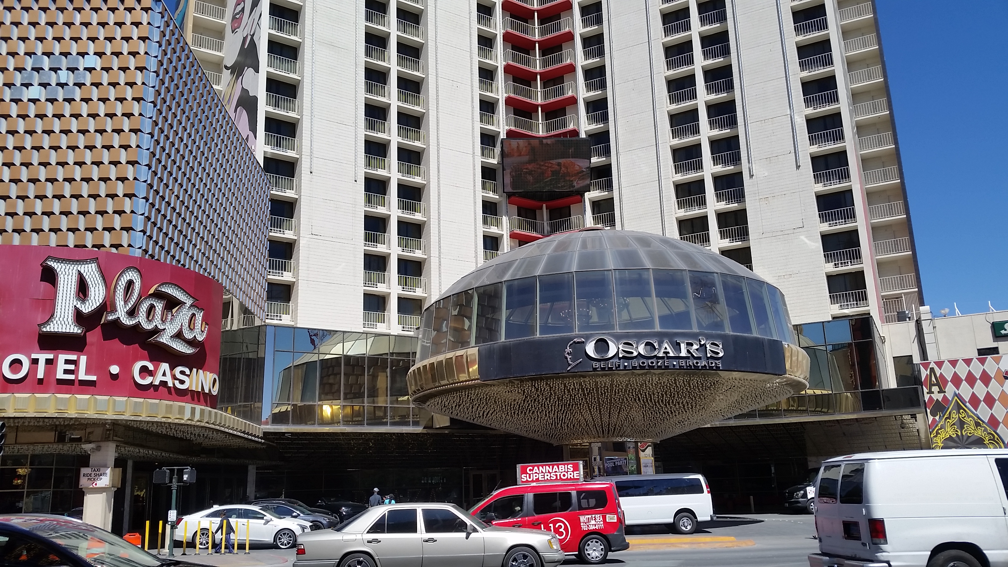 พูดถึงโรงแรม Plaza Casino and Hotel Downtown ก็ไม่ขี้เหร่มากนัก ห้องพักใหญ่เลย แต่เสียอย่างคือโรงแรมค่อนข้างเก่า ถึงแม้จะมีการรีโนเวทไปแล้ว แต่ก็ยังคงสภาพความเก่าให้เห็น พวกเราเน้นโรงแรมที่พอพักได้ เน้นเรื่องราคาถูกไว้ก่อน (จะได้เอาเงินที่เหลือไปเสี่ยงโชคค่ะ 55555) พวกเราพักที่นี่เป็นครั้งแรก โรงแรมอยู่สุดท้ายของถนนสาย ฟรีมอนท์น ดาวทาวน์ สะดวกสบาย สามารถเดินไปดูการแสดงได้ง่ายนิดเดียว ....และอีกอย่างที่พักโรงแรมนี้ คือมีห้องที่นี่เหลืออยู่โรงแรมเดียวที่มีสระว่ายน้ำ ช่วงหน้าร้อนต้องหาโรงแรมที่มีสระว่ายน้ำ จะได้ไปแช่น้ำให้หายร้อน พวกเราเดินทางไปก่อนวันหยุด 2 วัน ทำให้ไม่มีคนหนาแน่นมาก แต่แค่ติดวันหยุด ไป 1 วัน ...ทนๆเผชิญผู้คนหนาแน่นแค่วันเดียวคงไม่ทำให้เสียอารมณ์มากนัก ....