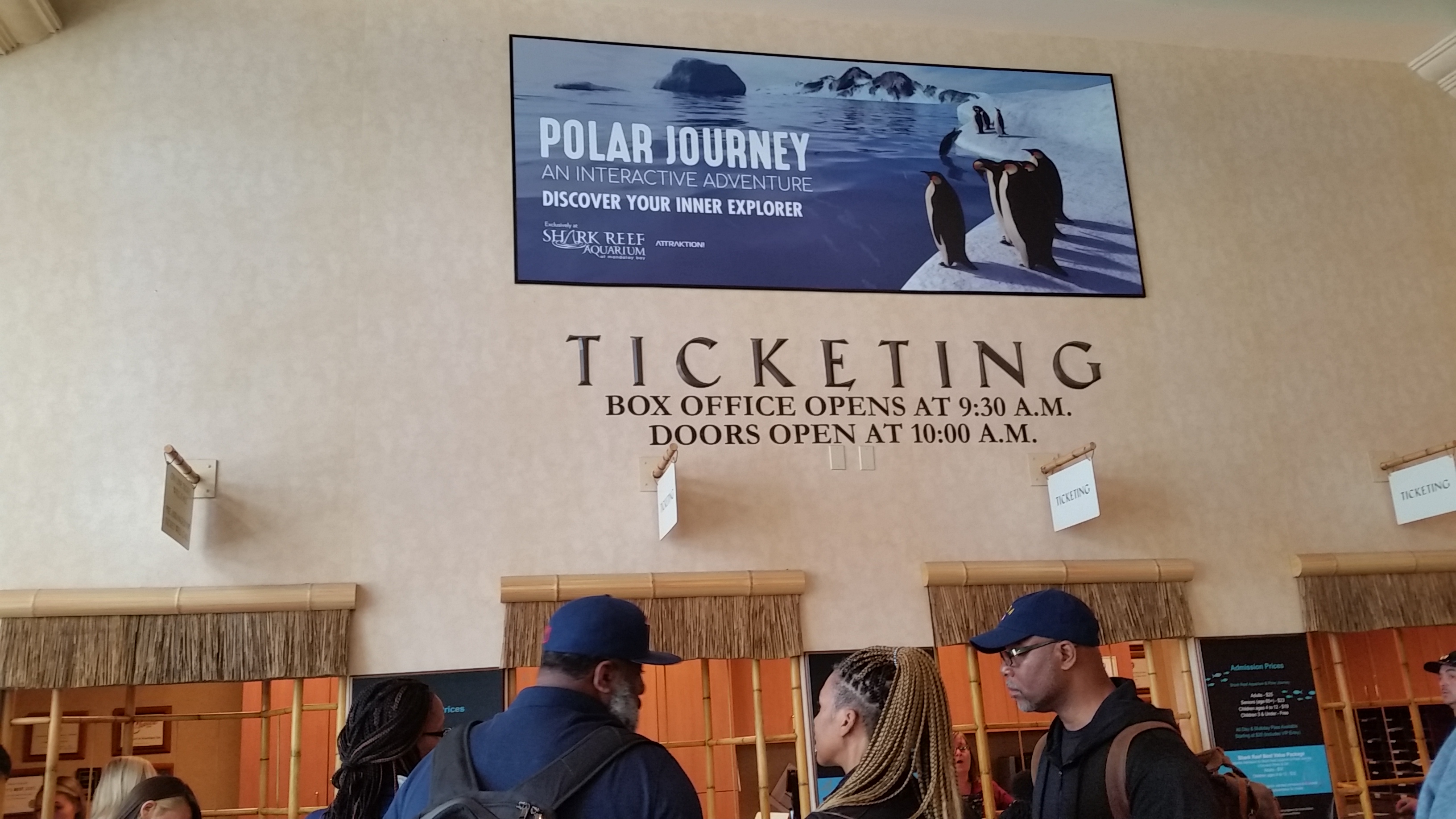 ก่อนที่จะเข้าไปดูในอความเรียมได้ ก็ต้องซื้อบัตรก่อนเข้า ค่าบัตรคนละ $25 ได้ดู 2 อย่างคือ Shark Reef Aquarium และ Polar Journey ก็ถือว่าคุ้ม เป็นการพักผ่อน เปิดหูเปิดตา ได้ดูสัตว์ต่างๆที่ไม่เคยเห็นมาก่อน ไฮไลต์ก็คือ ดูฉลามว่ายน้ำ เขาจะทำเป็นลักษณะอความเรียม เหมือนจะเป็นอุโมงค์ เขาเลี้ยงฉลามไว้ แล้วให้พวกเราเดินดู เห็นตัวเต็มๆของฉลามโดยที่ไม่เป็นอันตรายใดๆ