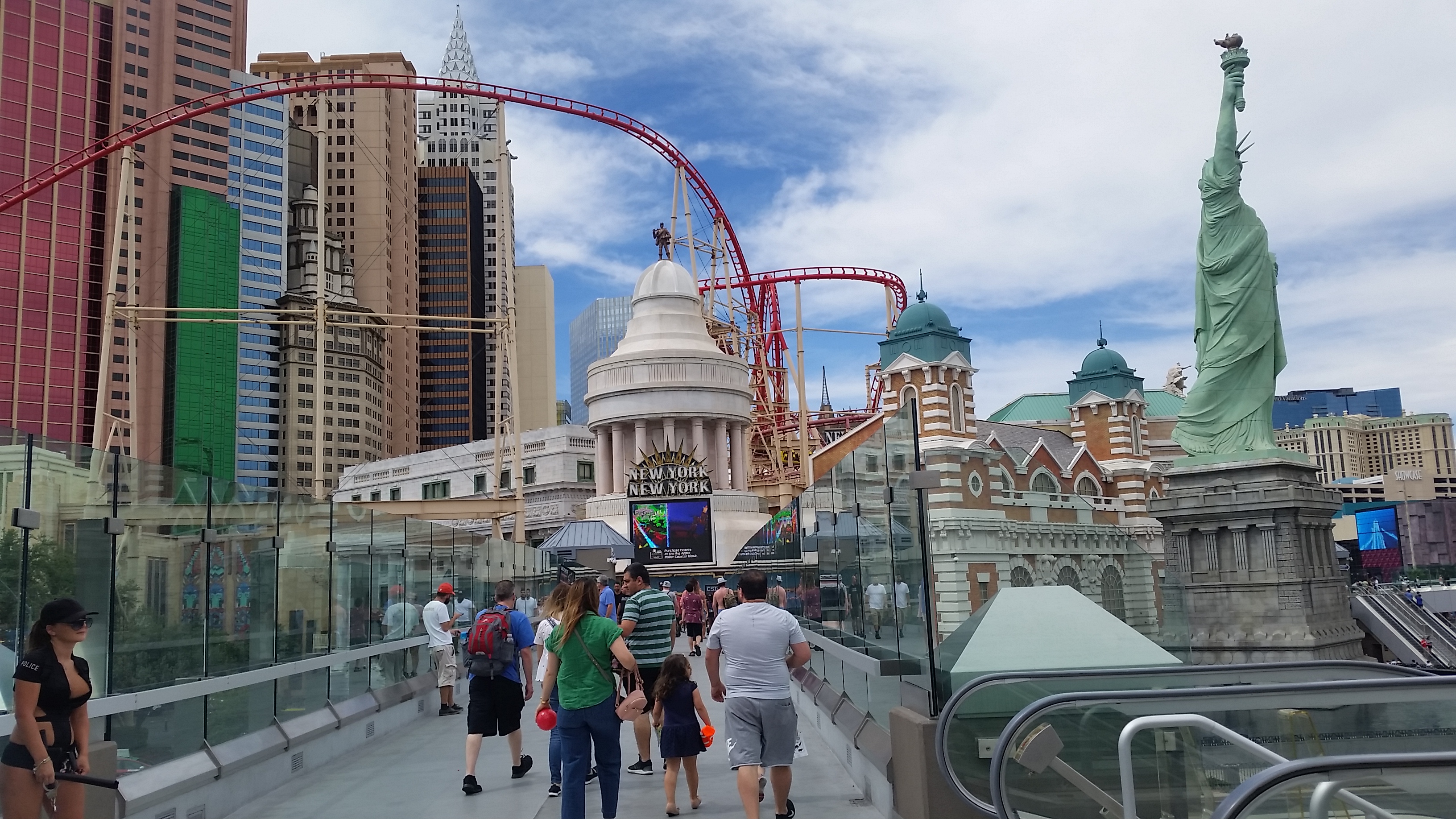 ส่วนภาพที่เข้าไปดูหมีโพล่าร์ไม่มีให้ชมนะค่ะ เพราะไม่ได้ถ่ายภาพมา จริงๆจะยกมือถือมาถ่ายแล้ว สามฮีห้ามไว้ รายนี้ห้ามทุกอย่าง ไอ้เราก็อยากได้รูปไว้เป็นที่ระลึกสักหน่อย แต่ก็โอเคค่ะ หลังจากที่ออกมาจากดูหมีแล้ว ก็ถึงคราวที่พวกเราได้เวลาเดินลุย เดินออกกำลังกายกันอย่างจริงๆ ด้วยอากาศที่ดีมากๆของวันนั้น อุหณภูมิ 89 ฟาเรนไฮต์ ถ้าคิดเป็นองศาเซลเซียสก็น่าจะประมาณ 30 ถือว่าอากาศอบอุ่นกำลังดี ด้วยความที่โรงแรมที่เราไปชมอควาเรียมอยู่เกือบท้ายสุดของถนนสตริป ดังนั้นพวกเราเลยได้โอกาสออกเดินไปเรื่อยๆ เข้า-ออกโรงแรมต่อโรงแรมเป็นว่าเล่น ระหว่างทางที่อยู่ในโรงแรม และรู้ๆกันอยู่ว่าแต่ละโรงแรมมีคาสิโน พวกเราก็เลือกเสี่ยงดวงกับตู้คาสิโน หยอดไปคนละ $20 ส่วนใหญ่ก็จะเสีย ไม่ค่อยมีได้หรอกค่ะ จนในที่สุดเดินมาถึงโรงแรมที่มีโต๊ะไพ่เกมส์ที่สามีชอบ ฮีก็จะหยุดพักเล่น ครั้งนี้ถือว่าพวกเราโชคไม่ดี เล่นไม่นาน $200 หายไปในพริบตาจริงๆ 55555 ....