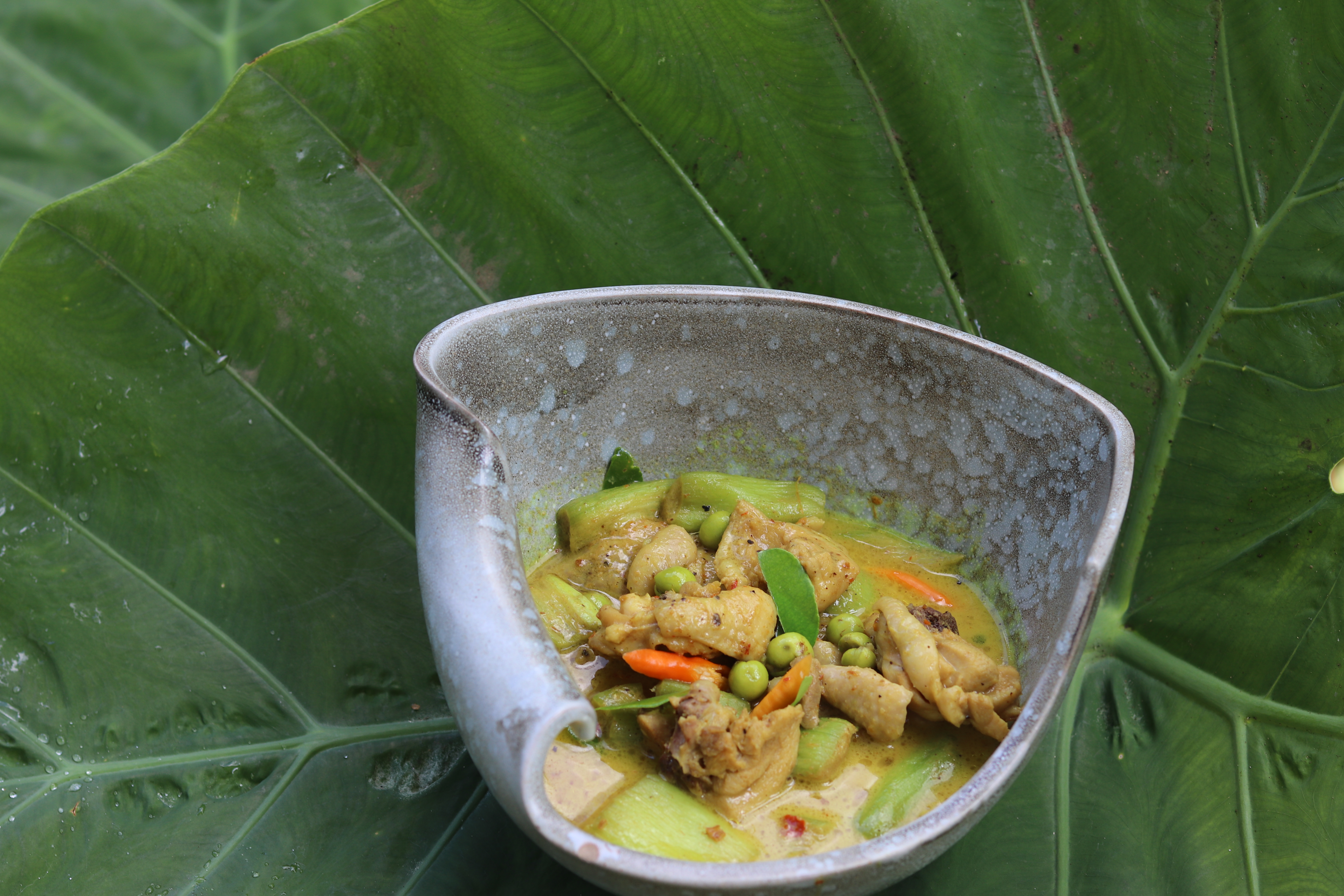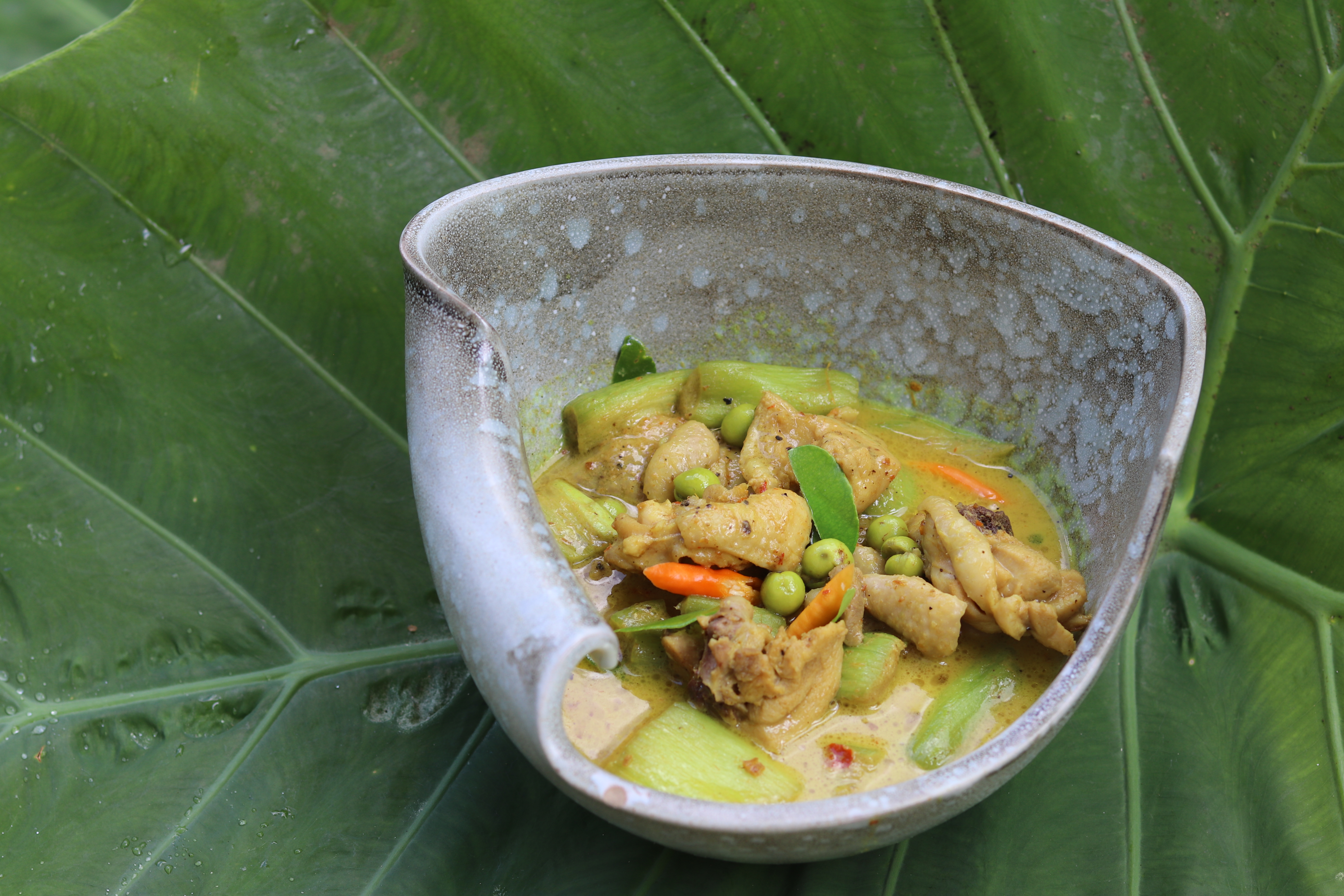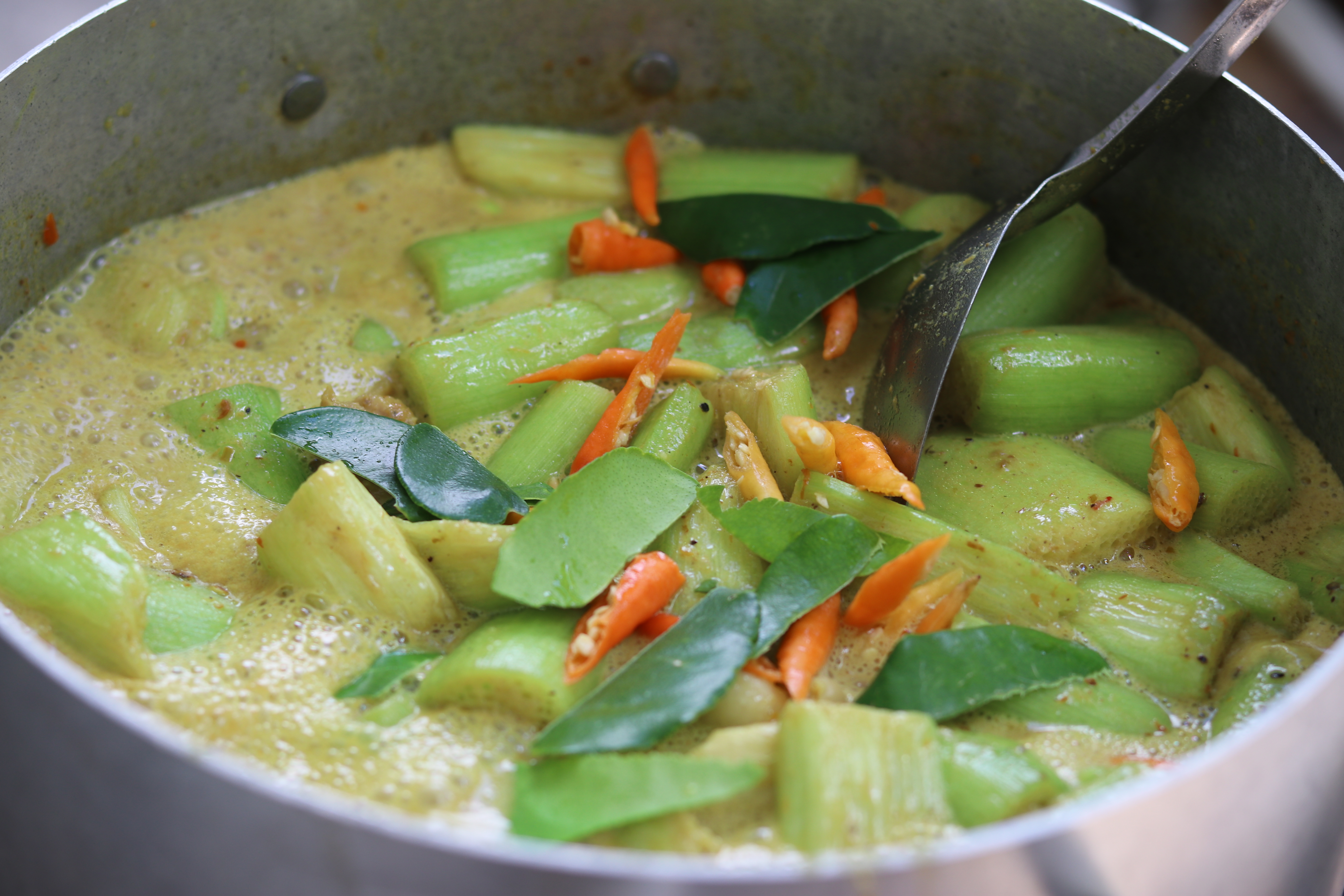 แกงกะทิ ไก่ใส่ต้นคูนและมะเขือพวง